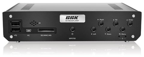 Компания BBK давно известна на российском рынке и за прошедшее время успела хорошо зарекомендовать себя в глазах покупателей. Пожалуй, наиболее популярным устройством компании за последний год стал HD-медиаплеер PopcornTV. Причина успеха проста - этот плеер поддерживает множество форматов видео с высоким разрешением, в том числе и MKV, который столь популярен в российских файлообменных сетях. Теперь на смену Popcorn'у или, скорее, в дополнение к нему, компания представила сразу три новых HD-медиаплеера: MP050S, MP060S и MP070S. Внешний видBBK MP050SЭто младшая модель в новой линейке устройств - самая простая, компактная, лёгкая и недорогая. Устройство имеет размеры 121x27x101 мм и весит всего 140 граммов. Его корпус сделан полностью из чёрного пластика и чем-то напоминает маленькую вздувшуюся коробочку. На верхней крышке ничего нет, кроме небольшого логотипа BBK. На переднем торце под прозрачным экранчиком находится ИК-приёмник для пульта дистанционного управления и индикатор питания. По бокам устройства есть небольшие вентиляционные прорези. На днище BBK MP050S располагаются четыре ножки из мягкой резины, которые не дадут устройству случайно соскользнуть. Там же есть небольшой выключатель питания. Сзади находится слот кардридера для карт SD/MMC/MS, разъём питания, порт USB для подключения флэшек или внешних жёстких дисков, композитный видеовыход, а также порт HDMI. При этом все разъёмы разнесены так, чтобы даже при подключении всех кабелей и штекеров они бы не мешали друг другу. В целом дизайн BBK MP050S можно назвать очень удачным - нет ничего лишнего, но в то же время устройство не смотрится топорно и наверняка неплохо впишется в интерьер. Правда, за такую компактность приходится расплачиваться. Дело в том, что в столь маленьком пластиковом корпусе практически невозможно обойтись без активного охлаждения. Поэтому в BBK MP050S есть небольшой кулер, но во время просмотра фильма вы вряд ли заметите его шум. Более функциональная модель и соответственно более крупная. Устройство имеет размеры 134x195x125 мм и весит уже 400 граммов. Как и у MP050S, корпус полностью сделан из чёрного пластика. В отличие от младшей модели конструкция медиаплеера подразумевает установку в вертикальном положении с помощью комплектной подставки, хотя никто не мешает расположить его горизонтально. Передняя панель глянцевая и имеет ряд неярких индикаторов: статус, наличие карты памяти или USB-носителя, подключение по сети и питание. В самом низу находится порт USB. В общем, ничего лишнего. Зато задняя панель просто-таки пестрит всевозможными разъёмами. На ней располагаются порт HDMI, компонентный и композитный видеовыходы, оптический и коаксильный разъёмы и порт Ethernet. Там же есть и кардридер SD/MS/MMC. Для подключения внешних жёстких дисков использовано интересное решение. Во-первых, на задней панели есть miniUSB, которым оснащается большинство съёмных накопителей. Во-вторых, там же находится обычный порт SATA и разъём питания. В комплекте с устройством идёт специальный переходник. Таким образом, к медиаплееру можно подключить любой жёсткий диск SATA. Проблема лишь в том, что такая "композиция" вряд ли будет красиво смотреться. Впрочем, если медиаплеер будет стоять под телевизором, то жёсткий диск не будет виден. BBK MP070SСамая старшая модель имеет не пластиковый, а металлический корпус. Это обусловлено тем, что в ней есть отсек для 