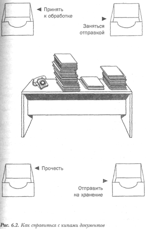 Подумайте об эргономике Мебель столы стулья РЕГУЛИРОВКА СТУЛА другие виды мебели оборудование освещение Использование компьютера Займитесь наведением порядка на вашем рабочем месте Наведение порядка в посудных, платяных и книжных шкафах Наведение порядка на рабочем столе Как справиться с кипами документов Как сохранить наведенный порядок Заключение 6. ПРАВИЛЬНО ОРГАНИЗУЙТЕ ПОРЯДОК В СЛУЖЕБНОМ ПОМЕЩЕНИИ Правильная организация порядка в служебном помещении может оказать значительное влияние на вашу производительность. Она позволит вам экономить время, предупреждать усталость, завершать выполнение задач быстрее, чем вы планировали. Имейте в виду, что привыкнуть к рабочей атмосфере, далекой от совершенства, очень легко, поэтому предлагаю вам в течение нескольких минут свежим взглядом окинуть ваш офис и подумать: · Насколько часто вам приходится вставать из-за стола, чтобы дотянуться до тех предметов, до которых вы не можете дотянуться сидя? · Достаточно ли свободного места на вашем столе, чтобы работать комфортно и без помех, не захламлен ли он? · Достаточно ли удобно расположены клавиатура и монитор вашего компьютера, чтобы вы могли работать не напрягаясь и не испытывать чрезмерной усталости? · Имеется ли у вас свободное по соседству с компьютером место, которое бы вы могли использовать для одновременной работы с компьютером и бумагами? · Не перегружены ли ваши посудные и платяные шкафы, а также книжные полки ненужными вещами? · Соответствует 'ли ваше оборудование для хранения тому имуществу, которое должно в нем храниться? · Часто ли вам приходится тратить время на поиски нужных вам вещей? · Наилучшим ли образом расположена мебель в вашем офисе с точки зрения работы за письменным столом, работы на компьютере, приема коллег и клиентов? Для правильной организации вашего рабочего места каких-либо стандартных рецептов не существует, что может быть удобным для вас, не удобно для другого, и наоборот. Тем не менее, для того чтобы наилучшим образом организовать порядок в служебном помещении, вам следует обратить внимание на ряд общих принципов, руководствуясь которыми, вы можете добиться оптимального состояния в этом вопросе. Подумайте об эргономике Эргономика — это процесс научной организации труда, направленный на создание средств оптимизации труда, совершенствование методов выполнения человеком какой-либо работы с учетом его безопасности, комфортности и производительности. Возможно, в отношении организации порядка в вашем служебном помещении это звучит несколько высокопарно, однако нет никакого сомнения в том, что выбор и размещение мебели, оборудования, справочных материалов и различных принадлежностей в вашем офисе может оказать значительное влияние на то, как вы работаете. Мебель столы На вашем столе должно быть достаточно свободного места, чтобы вам было удобно работать, не отрываясь по пустякам. Об устранении беспорядка на вашем рабочем месте мы поговорим позже. Если вам приходится делить свое время между компьютером и работой с бумагами, подумайте о панорамном методе, который позволит вам перемещаться между традиционным столом и компьютером не вставая. Если у вас есть возможность, постарайтесь приобрести стол с регулируемой высотой. Продумайте, как установить стол таким образом, чтобы он составлял еди