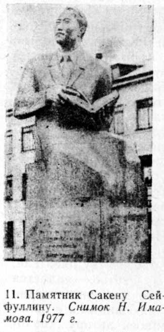 САКЕН СЕЙФУЛЛИН Имя Сакена Сейфуллина — революционера, общественного и государственного деятеля, прозаика и поэта, основоположника казахской советской литературы — неразрывно связано с Акмолинском. Родился он в Нельдинской волости Акмолинского уезда в семье кочевника. Окончил Акмолинскую приходскую школу и Омскую учительскую семинарию. В Омске познакомился с русскими революционерами, вступил в члены казахской молодежной организации «Бирлик» («Единство»). С падением самодержавия возвратился в Акмолинск, вошел в состав большевистской инициативной группы. Вокруг него объединились единомышленники из казахской интеллигенции. «Группа акмолинских казахов, — впоследствии, в апреле 1926 года, писал в предисловии к своему мемуарному роману Сакен Сейфуллин, — под руководством российских большевиков приняла участие в революционном преобразовании родного края, боролась против врагов всех мастей и калибров, особенно против своего местного врага, Алаш-орды»[90]. Сейфуллин пишет далее, что в Акмолинске были созданы казахская молодежная организация «Жас казах» («Молодой казах») и казахский комитет, налажен выпуск газеты «Тиршилик» («Жизнь») на казахском языке, редактором которой стал Рахимжан Дюсембаев, а наиболее деятельными ее корреспондентами — сам Сакен Сейфуллин, Абдулла Асылбеков, Омарбай Донентаев и другие. Однако многие члены казахского комитета вскорости «поправели» и механическим большинством голосов изменили его состав. «Простые люди, жаждущие свободы и справедливости, — писал Сакен Сейфуллин, — не могли найти поддержки в новом комитете и потому шли за советами, за помощью в «Жас казах». Наша газета «Тиршилик» день ото дня становилась популярнее. Газета была органом «Жас казаха», и потому мы смело могли критиковать деятельность казахского комитета. От случая к случаю мы давали понять своему читателю, в чьих руках сейчас находится комитет. В одном из номеров «Тиршилика» появилось мое стихотворение под недвусмысленным названием «Сторожевые псы». Председатель комитета Хусаин Кожамберлин выразил свое недовольство по поводу этого выступления, но стихотворение тем не менее сыграло свою роль в борьбе с новым комитетом»[91]. Первой казахской пьесой, поставленной на клубной сцене Акмолинска 1 мая 1918 года, была пьеса Сакена Сейфуллина «На пути к счастью», написанная в 1917 году. При контрреволюционном перевороте в Акмолинске 3 июня 1918 года Сейфуллин был схвачен вместе с другими работниками Совдепа, закован в кандалы и посажен в тюрьму. Он испытал ужасы «вагонов смерти» атамана Анненкова и омского белогвардейского концентрационного лагеря. Счастливая случайность позволила ему бежать из лагеря, скрываться под чужим именем. После того, как Красная Армия освободила Приишимье от белых, Сакен вернулся в Акмолинск. Был заместителем председателя и заведующим отделом управления Акмолинского уисполкома, членом ревкома Киркрая[92]. В 1920 году, при его ближайшем содействии и участии в уезде были открыты сельскохозяйственная школа, две технические школы, 104 школы 1-й ступени, 3 школы 2-й ступени, 6 школьных мастерских, организован ряд спектаклей и концертов, открыты центральная уездная библиотека, рабоче-крестьянский клуб имени III Интернационала, при котором действовали секции — драматическая, хоровая, музыкальная, литературная[93]. В