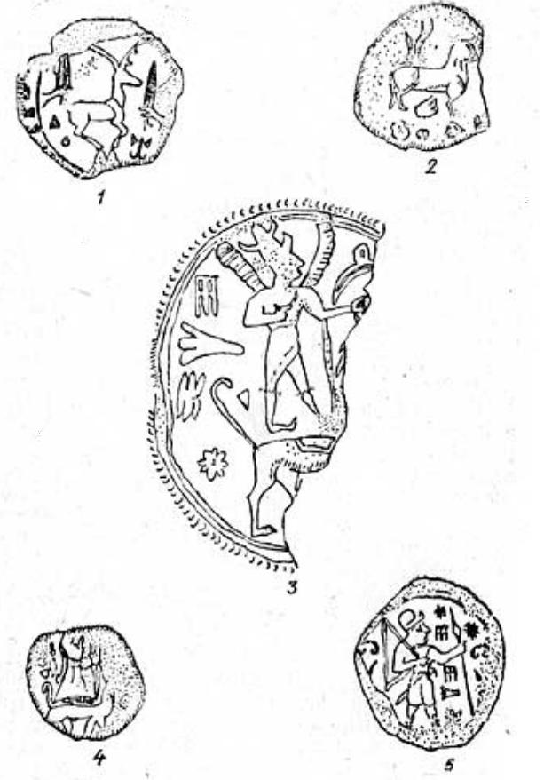 Глава IX. ИскусствоВ этой книге речь шла до сих пор в основном о хеттском царстве и об империи Хаттусы. Мы смогли представить довольно полную картину этого царства и его цивилизации, основываясь на обильной информации, почерпнутой из глиняных табличек, составлявших царский архив. Когда же мы обращаемся к произведениям искусства и предметам материальной культуры, созданным хеттской цивилизацией, то политический фон приобретает меньшее значение, а временные и пространственные пределы изменяются. Период Древнего царства мало что дает нам, кроме гончарных сосудов. Скульптура начинается вместе с империей, но не оканчивается с ее падением. Напротив, царства — наследники отличаются изобилием наскальных изображений, статуй и рельефов, неотделимых от скульптуры царства Хаттусы, даже если в них проступают все явственнее месопотамские черты (особенно в сирийских царствах). Пожалуй, чтобы подчеркнуть контраст, следует начать с того, что нам известно о дохеттском искусстве в центральной Анатолии. В Аладжа — Хююке турецкие археологи откопали ряд могил, датируемых начиная с III тыс. и хранивших замечательное собрание предметов. Среди них были серебряные и бронзовые фигурки животных, золотые кувшины и кубки, золотые украшения и ряд «штандартов» (неизвестного назначения), форма которых, как полагают, берет свое начало от солнечного диска; на некоторых из них изображены маленькие фигурки оленей. Олень, как мы уже видели, был священным животным того бога, которому поклонялись в хеттские времена по всей Анатолии. Однако в целом эти изящно выделанные предметы не находят никаких параллелей в более поздних периодах (хотя, разумеется, это может быть связано с элементом случайности, неизбежным при раскопках). Столь же уникальны примитивные каменные идолы из Кюльтепе (см. фото 10 б в галерее); тела их выполнены в форме диска, покрытого геометрическим рисунком; сверху диск переходит в голову на длинной шее. В некоторых случаях имеются две или даже три головы, а в более, примитивных образцах голова сводится всего лишь к паре глаз; это может навести на мысль о связи с «глазастыми идолами», большое количество которых найдено проф. Мэллоуэном в Телль — Браке в Северной Месопотамии. Тип лица, изображенного на наиболее искусно выполненных образцах, совершенно не похож на что-либо относящееся к хеттскому периоду. Посуда, характерная для этого древнего периода, — это полихромные изделия красивой ручной работы, ранее известные как каппадокийские. Сосуды украшены геометрическим рисунком, сделанным черной, красной и белой красками; иногда вводились стилизованные изображения птиц. Формы сосудов весьма разнообразны; носик сосуда любили делать срезанным. Ритоны в форме животных, один из которых показан на фото 18 б, и модель сапожка на фото 21 являют примеры образцовых изделий гончарного искусства. Геометрический рисунок тесно связывает этот тип посуды с дисковыми идолами, описанными в предыдущем абзаце. Одновременно с посудой этого типа в ходу были изделия, изготовленные на гончарном круге, глянцевые, политые, как правило, красной глазурью. Они отличались чрезвычайно изящной формой и пропорциями и наводили на мысль о металлических прототипах (см. фото 21 в галерее). Постепенно раскрашенные изделия уступили им место. Впрочем, ко времени хеттской империи мета