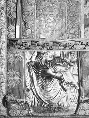 По нашему мнению, дело не в пожарах. Ведь именно в конце XVIII – начале XIX веков эти земли начали постепенно выходить из-под турецкого владычества и сюда стали все больше и больше проникать европейцы, вооруженные скалигеровской историей. В 1821 году произошла греческая революция. Оказывается, именно в это время, в 1821 году, были повешены кипрский архиепископ и три митрополита [410], с.24. Так что еще большой вопрос, кто и зачем поджег Киккский монастырь. И точно ли из-за пожара погибли ценные монастырские архивы. Скорее всего, в них хранилось много документов, способных пролить свет на истинную историю XV-XVI веков. Случайно ли, что все документы погибли именно тогда, когда европейцы наконец проникли на Кипр? Обратим внимание на то, что новый оклад для Иконы был изготовлен в 1795 году, новый иконостас – в 1755 году [410], с.9, 13. А монастырские архивы сгорели, или были уничтожены, в 1751 году и в 1813 году. Получается, что все это происходило примерно в одно и то же время, предшествующее греческой революции. Возникает естественная мысль, что архивы монастыря были уничтожены именно во время революции. А затем, задним числом, списали «на пожары». И не в это ли самое время закрыли икону Киккской Богоматери? Если не еще позже. Может быть, в конце XIX века. В связи с освобождением от «турецкого гнета» и сопутствующим изменением официального взгляда на «древнюю» и средневековую историю. Скорее всего, до XVII века, – а может быть даже и позже, вплоть до XIX века, – Икона Киккской Богоматери была открыта для поклонения. Сама мысль закрыть лик почитаемой иконы, причем нарисованной не кем-нибудь, а самим апостолом Лукой, выглядит чрезвычайно странно и не имеет аналогов. Что же могло так не понравиться редакторам средневековой и «древней» истории, что они были вынуждены навсегда закрыть Икону от взоров посетителей? Мы не можем доказательно ответить на вопрос. Поскольку достоверных изображений Иконы нам неизвестно. Более того, как сообщает, например, архиепископ Сергий в своем фундаментальном труде «Полный Месяцеслов Востока» [39], в известной книге XIX века «Изображения икон Пресвятой Богородицы», помещено неверное изображение этой Иконы [39], т.2, с.394. Следует кстати отметить, что праздник этой известной Иконы приходится на 26 декабря старого стиля, то есть сразу на другой день после Рождества. Этот день в святцах так и называется – Собор Пресвятой Богородицы [39], т.2, с.393. рис.12.43 Сегодня посетители Киккского монастыря на Кипре могут увидеть Икону лишь в том виде, который показан на фотографии, приведенной на рис.12.43. Лик Богородицы закрыт покровом, а в прорези покрова виден только лишь оклад. Таким образом, Икона полностью закрыта от глаз посетителей. Это – новый оклад, изготовленный в 1795 году, см. выше. Старый оклад 1576 года можно увидеть в самом храме Киккского монастыря [997], с.25. См.рис.12.44. Внутрь старого оклада вставлена другая икона Богоматери [997], с.35. См. рис.12.45. Таким образом, сегодня можно увидеть лишь старый оклад XVI века, с другой иконой внутри, а саму Икону, нарисованную апостолом Лукой, сегодня увидеть нельзя. рис.12.44 рис.12.45 Обратим внимание на головной убор Богородицы, повторенный в старом окладе 1576 года, рис.12.44 и рис.12.45. Это – русский кокошник. То есть хорошо известный, чисто русский головной убор. Отметим, что на многих иконах Богородицы у нее на голове изображена корона. Но зд