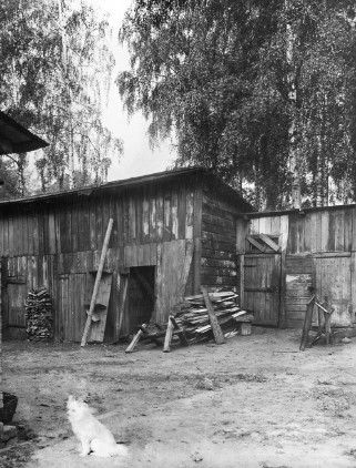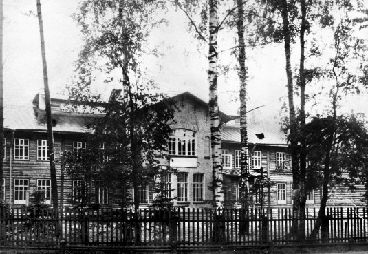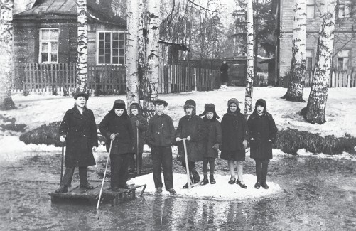 Дом и двор Воспоминания детства всегда связаны с домом, где жил, двором, садом и близлежащими улицами. Мой дом был дореволюционной постройки. Первый и второй этажи были одинаковыми по числу и расположению комнат и представляли собой две квартиры, каждая из шести комнат с прихожей, кухней, уборной. Квартиру первого этажа до революции и какое-то время после нее целиком занимал мой дед Карл-Эрнст Магнусович Кобак с женой Марией Георгиевной (Егоровной) и сыном Оскаром. По-видимому, дед был первым съемщиком этой квартиры после постройки дома. Оскар и Юлия, которая появилась в доме в 1926 году, произвели на свет в 1927 – меня, а в 1936 – моего брата Эдуарда. На моей памяти, т. е. в начале 1930-х годов, квартира была уже коммунальной. Наша семья занимала 3 комнаты. Так было до зимы 1942–1943 годов, когда наш дом был разобран на дрова. Таким образом, дом моего детства просуществовал около 35 лет. В 1942 году семья состояла из трех человек: матери и нас с братом. Стояла вторая блокадная зима, голод, безотцовщина (мне 15 лет, брату 6). Перевозить нас и наши вещи было некому. Второй этаж уже разобрали, а мы все еще жили внизу, на первом этаже. Помню высокие печные трубы, 5 или 6 штук, возвышающиеся над нашей квартирой без крыши. Вещи перевезли понемногу сами, на санках, благо было не очень далеко. Много вещей бросили, часть была разворована. Но это все было позже, а сейчас вернусь к дому моего детства. Адрес был такой: Лесной, Институтский пр., д. 18, кв. 4. Под № 18 числилось четыре дома. В первом, каменном двухэтажном особняке с зеркальными окнами, выходящем фасадом на Институтский проспект, было три квартиры. Наш дом стоял за особняком и левее. Счет квартир был во всех домах общий. Институтский пр., 18-2. 1910-е гг. До революции дома принадлежали генералу Тахтареву[3]. В особняке жил генерал с семьей, наш деревянный дом сдавал внаем. Съемщиком первого этажа (кв. 4) был мой дед. Кто снимал второй этаж (кв. 5), я не знаю. Могу предполагать, что второй этаж был более престижным, чем первый, и там, возможно, жил офицер с семьей. Повод для догадки таков: мальчишкой я не единожды облазил весь дом, все его закоулки, кладовки, чердак и крышу. На чердаке, в углу, явно в потайном месте, я обнаружил офицерские погоны, пуговицы и галуны. В начале тридцатых годов дома были коммунальными, но все оборудование сохранилось с дореволюционных времен. Дома были построены очень добротно: хорошие печи прямоугольной формы с обшивкой из гофрированного железа и литыми чугунными дверцами, электричество, водопровод, канализация со свинцовыми трубами (местная, с выгребными ямами), кладовки, подвалы, двойные входные двери. Дверная табличка Кобаков Генеральский дом стоит и по сей день. О нем я еще расскажу, а пока о нашем доме. Он был бревенчатый, рубленый (что выяснилось, когда его ломали), обшитый вагонкой, очень теплый. По фасаду, выходящему в сторону Институтского проспекта, было пять окон, справа – парадный вход и лестница на второй этаж. С противоположной стороны симметрично располагались черный ход и черная лестница на второй этаж. Резные входные двери были сверху застеклены. За ними шел небольшой коридор наподобие веранды. Направо – двухмаршевая лестница на 2-й этаж, налево – вход в нашу квартиру. На дверях металлическая табличка «Эрнстъ Магнусовъ КОБАКЪ», и еще Е. Kobak – готическим шрифтом. Табличка была снята в 1942 году, ко