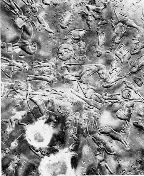 Как мы видим, автор Круглого зодиака очень хорошо разбирался в астрономии. Круглый зодиак буквально переполнен астрономической символикой. Практически каждый изображенный на нем символ имеет астрономический смысл. В том же храме в Дендере, где был обнаружен Круглый дендерский зодиак, находился еще один зодиак – «Длинный» или «Четырехугольный» дендерский. Так же, как и Круглый дендерский зодиак, он представляет собой потолочный барельеф внушительного размера. Он состоит из двух половин, длина каждой из которых – около 25 метров, рис.1.11, рис.1.12, рис. 1.13 и рис.1.14. рис.1.11 рис.1.12 рис.1.13 рис.1.14 Половины Длинного зодиака, изображающие в совокупности полный зодиакальный пояс, расположены по краям потолка огромного «гипостильного» зала размером 25 на 42,5 метров [9], с.162. Потолок покрыт изображениями в основном астрономического содержания, рис.1.15. рис.1.15 Современную фотографию небольшой части Длинного дендерского зодиака мы приводим на рис.1.16. рис.1.16 Расшифровке и датированию Круглого и Длинного дендерских зодиаков было посвящено очень много работ. В XIX-XX веках его изучали Дюпюи, Лаплас, Фурье, Летрон, Хольм, Био, Бругш, Б.А.Тураев, Н.А.Морозов [4], том 6, с.655...672, Н.С.Келлин и Д.В.Денисенко [15], Т.Н.Фоменко [1]. В результате было получено несколько различных и в общем-то почти равноправных датировок. Таким образом, датировка этих зодиаков оставалась неоднозначной. Наши исследования показали, что на дендерских зодиаках, помимо основного гороскопа, содержится дополнительная астрономическая информация, которая не была учтена предыдущими исследователями. Ее учет приводит к однозначной датировке. А именно: гороскоп Круглого дендерского зодиака датируется, согласно нашим исследованиям, утром 20 марта 1185 года н.э. Гороскоп Длинного зодиака датируется 22-26 апреля 1168 года н.э., то есть на 17 лет раньше. Подробнее об этих датировках рассказано в главе 6. Итак, оказывается, что древне-египетский храм в Дендерах был построен не ранее 1185 года. А скорее всего – гораздо позже этого времени. В самом деле – дата, зашифрованная на потолке храма, вряд ли относится ко времени его постройки. Более вероятно, что строители храма изобразили на его потолке дату какого-то священного события. Например, события, которому был посвящен храм. Согласно новой хронологии, святилище в Дендере, частью которого является как гипостильный зал с Длинным, так и помещение с Круглым зодиаком, скорее всего было построено в XIV-XV веках н.э. То есть – в эпоху между Великим=«монгольским» завоеванием XIV века и османским=атаманским завоеванием XV-XVI веков. Или же, во второй половине XVIII века, когда власть в Египте на короткое время снова захватили мамелюки. Другими словами, это, скорее всего, – мамелюкские постройки. Напомним, что Египет был завоеван османами-атаманами в 1517 году, а до того в нем правили мамелюки [16], том 15, с.454. Согласно нашей реконструкции, именно мамелюки осуществляли в Египте власть Великой=«Монгольской» империи. Их задачей было содержать и охранять грандиозное царское кладбище Великой империи. К этому кладбищу, скорее всего, относились пирамиды, храмы и другие постройки, связанные с царскими погребальными обрядами. См. [РЕК]:1. В 1517 году мамелюки были отстранены от власти в Египте османами-атаманами. Хотя, согласно нашей реконструкции, османы-атаманы, так же, как и мамелюки, были выходцами 