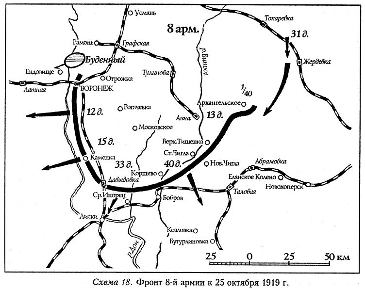 Схема 18. Фронт 8-й армии к 25 октября 1919 г.