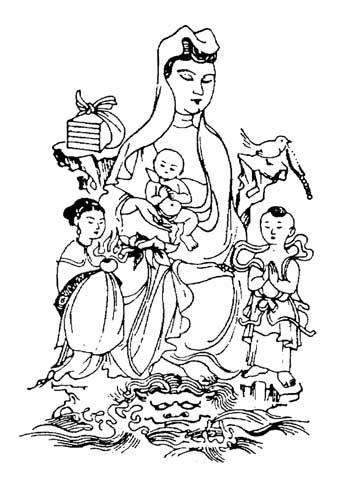 Чем дальше от Урала и Алтая, тем более обобщенным становится образ Хозяйки гор. Стираются не только ее женские, но и человеческие черты. Сказанное прекрасно видно на примере китайской богини — Хозяйке гор Сиванму (пишется также Си-ван-му). Ее главное сокровище — напиток бессмертия, который пытались заполучить многие мифические герои и исторические императоры Китая. Хозяйка обитает на далеком западе (по отношению к Китаю, разумеется) и имеет звероподобный вид. В древнем китайском компендиуме «Каталог гор и морей» утверждается: «Еще в трехстах пятидесяти ли к западу находится Нефритовая гора. Это место, где живет Бабка(Хозяйка) запада (Сиванму). Бабка запада похожа на человека, но с хвостом барса, клыками, как у тигра, любит свистеть; на всклокоченных волосах надеты украшения. Она управляет небесными эпидемиями и пятью наказаниями. (Там) водится животное, похожее на собаку, но пятнистое, подобно леопарду. У него рога, как у быка. Оно называется цзяо. Лает, как собака. Где его увидят, в том царстве получат большой урожай. (Там) водится птица, похожая на фазана, но красная. Называется си-нъюй. Она питается рыбой. Ее голос похож на ли. В том царстве, где ее увидят, быть большому наводнению».{34} Сохранилось древнее изображение Сиванму в окружении подвластных ей животных (среди них — дракон). Хотя на ксилографии у богини человеческий вид, специалисты по китайской мифологии расходятся во мнении: кто же здесь конкретно изображен — мужчина или женщина? В древних источниках можно найти указания и на мужскую ипостась Сиванму. Однако впоследствии в народном представлении она превратилась в совершенную красавицу, обитавшую в различных горных областях и именовавшуюся Горным духом, к коему обращались молитвы и которому посвящались стихи: В далеких горах Востока С Сиванму связан еще один интересный для настоящего исследования цикл древних мифов, посвященных великому стрелку И. Изгнанный богами с неба за то, что, спасая землю от нестерпимого жара, расстрелял из лука девять из десяти сиявших тогда в небесах солнц, — богоборец И отправился в далекую Западную страну к Хозяйке тамошних гор Сиванму, дабы выпросить у нее эликсир бессмертия. Это ему удалось. Однако его жена — небесная фея Чан-э — коварно решила одна воспользоваться чудесным снадобьем и выпила все содержимое заветного сосуда. За это боги наказали ее: превратили в безобразную трехлапую жабу-чань, которая и вознеслась на луну, где Чан-э и стала богиней ночного светила. Эти мифологические перипетии живо напомнят российскому читателю популярную сказку о Царевне-лягушке. В повседневном обиходе китайская Хозяйка гор Сиванму нередко звалась просто Бабка. Хозяйка Медной горы в ряде случаев называет себя каменной бабой. Исключительно интересное признание! Само собой напрашивается предположение: а не воздвигались ли в честь Хозяйки и реальные каменные бабы, разбросанные на необъятных просторах всей лесостепной Евразии (один такой каменный истукан до середины XIX века находился в подмосковном Кунцеве — ныне городском районе Москвы)? А почему бы и нет? С одной стороны, распространенная среди археологов версия, что бабы водружались на месте смерти или захоронения матерей, жен, дочерей, любимых наложниц варварской либо кочевой знати, — слабо подкреплена материально. С другой стороны — имеется не