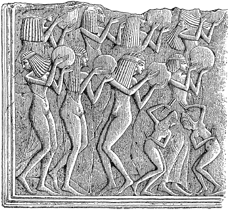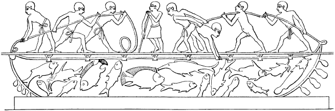 Глава IVОТДЫХ И РАЗВЛЕЧЕНИЯ Когда какой-либо народ поднимается на более высокие уровни цивилизации, каждый раз многие занятия, которые в прошедшие времена были необходимы для поддержания жизни людей, перестают быть необходимыми, но при этом не оказываются забытыми. Хотя их практикуют реже, людям кажется, что они приносят более чистое удовольствие, чем прежде, и, при отсутствии принуждения, то, что в прежние времена было тяжелой работой, становится дарящей наслаждение забавой. Когда мы впервые получаем возможность взглянуть на египтян, вероятно, уже прошли века с тех пор, как те потеряли необходимость в том, чтобы пронзать рыб острогой или убивать птиц бумерангом для добывания пищи. Однако в более поздние времена эти два занятия доставляли им гораздо больше удовольствия, чем ловля рыбы сетью или птицы – силками. Подобные примеры можно найти в истории всех народов и во все времена. ![]() Угощение гостей вином во времена Нового царства. Хозяин и хозяйка – писец царя Хоремхеба и жена писца Эссе; гости – вожди наемников его величества (согласно W., I. Pl. xi = Perrot, 796) Однако разумно будет указать на то, что этими старинными занятиями позже могли заниматься лишь те, кому было не важно, будет ли результат значительным. Египтяне исторической эпохи, когда им были нужны гуси, пускали в ход сети и силки, а с копьем и бумерангом охотились только богатые и знатные мужчины – больше для развлечения, чем для пользы. Похоже, что этот род развлечений был характерен только для аристократов и даже считался привилегией знатных людей: только господин мог тешиться охотой, а слуга был обязан заниматься чем-либо более полезным. Эта точка зрения, хорошо знакомая нам по феодальным обычаям Средних веков, кажется, была в Египте всеобщей, поскольку знатный господин, когда изображают, как он пронзает рыб острогой или убивает птиц метательным оружием, всегда бывает показан в своем самом почетном наряде – в царской юбке и даже с царской бородой. По их мнению, эта охота в болотах была не просто одним из их занятий, а драгоценной привилегией, княжеским правом. Уже в начале исторического периода в Египте существовала высокоразвитая земледельческая цивилизация (см. Введение). Значительная часть земель, ранее покрытых болотами и тропическими лесами, уже стала пашней. Но в это же время продолжали существовать старые русла рек, и эти полосы болот и наполовину стоячей воды, заросшие, как в старину, папирусом, служили убежищем для бегемотов, крокодилов и бесчисленных водяных птиц. Это и были те «блаженные места охоты» знатных людей Древнего Египта, которые часто упоминаются как «речные заводи» и «пруды с птицами, места удовольствия». В жизни египтян они играли ту же роль, что и лес в немецком фольклоре; возможно, величайшим наслаждением, которое знал египтянин, было грести в легкой лодке, проплывая между красивыми качающимися метелками папируса, срывать цветы лотоса, вспугивать диких птиц и затем сбивать их метательной палкой, пронзать острогой огромных нильских рыб и гарпуном – бегемотов. От всех эпох остались рисунки с изображением такой охоты, и нам достаточно лишь взглянуть на них, чтобы понять, как сильно египтяне любили эти дикие места и сколько поэзии находили в них. ![]() Охота на птиц с метательной палкой (по L. D., ii. 130) Мы видим, как огромные стебли папируса поднимают свои 