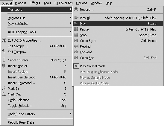Глава 3Быстрый старт Создание проекта Загрузка медиафайлов Проигрывание файлов Создание окна данных и работа с ним Навигация по файлам данных Масштабирование отображения данных Сохранение файлов Рендеризация данных Сохранение проектов В предыдущей главе говорилось о том, как установить программу. Теперь нужно запустить приложение Sound Foge 9.0 и ознакомиться с общими возможностями программы. В данной главе рассказывается, как создать проект, загрузить медиаданные и создать окно данных. Здесь будут рассмотрены вопросы создания маркеров, областей, навигация по данным проекта, работа с окном данных. В заключение будет описано, как сохранить проект и обработанные данные в медиафайл. Если при установке Sound Foкge было указано создание на Рабочем столе запускающего программу ярлыка, то можно воспользоваться им для запуска приложения. Если такого значка на Рабочем столе нет, то программу можно запустить, выполнив следующие действия. 1. Нажмите кнопку Пуск (Start), чтобы отобразить главное меню. 2. В появившемся меню выберите пункт Все программы (All Programs) – отобразится список программ (рис. 3.1). ![]() Рис. 3.1. Содержимое пункта меню Все программы (All Programs) меню Пуск (Start) 3. Выполните команду Sony > Sound Forge 9.0 > Sound Forge 9.0 – откроется главное окно программы. Содержимое главного окна с основными элементами интерфейса программы было описано в предыдущей главе, поэтому теперь рассмотрим возможность создания нового проекта. Создание проектаЧтобы начать работу с программой, нужно создать новый проект и назначить ему определенные параметры. Для этого следует выполнить команду меню File > New (Файл > Новый) или нажать кнопку New (Новый) на панели инструментов – откроется окно New Window (Новое окно) (рис. 3.2), в котором необходимо настроить параметры создаваемого проекта. ![]() Рис. 3.2. Параметры создаваемого проекта Раскрывающийся список Sample rate (Частота дискретизации) позволяет указать частоту, с которой будет оцифрован звук. Чем выше это значение, тем более качественным будет звук и тем большее дисковое пространство потребуется для сохранения файла. Можно выбрать требуемое значение из списка или ввести собственное в интервале от 2000 Гц до 192 000 Гц. Значение по умолчанию – 44 100 Гц. Параметр Bit-depth (Разрядность квантования) определяет количество памяти в битах, используемой для записи одного сэмпла при сохранении данных аудио. Больший размер сэмпла обеспечивает лучшее качество звука, но увеличивает размер файла. Доступные значения: 8 bit (8 бит), 16 bit (16 бит), 24 bit (24 бит), 32 bit (32 бит), 64 bit (64 бит). Значение по умолчанию – 16 bit (16 бит). Параметр Channels (Каналы) позволяет указать вид записи – Mono (монофоническая) с одним каналом или Stereo (стереофоническая) с двумя. Стереофонические файлы имеют вдвое больший размер, чем монофонические. По умолчанию в программе установлено значение Stereo (стереофоническая). Информация области Maximum editing time (Максимальное время редактирования) указывает максимальное время звучания файла, который можно записать на свободном пространстве пользовательского винчестера с установленными параметрами звука. Выбрав нужные значения, следует закрыть окно New Window (Новое окно), нажав кнопку OК, – внутри рабочей области программы появится новое, пока еще пустое окно Sound 1 (Звук 1) (рис. 3.3). ![]() Рис. 3.3. Новое окно Sound 1 (Звук 1) В строке состояния (Status bar) в нижней части главного окна программы о