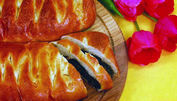 Изделия из дрожжевого теста Пирог «На здоровье» Продукты Для теста: 1 1/2 стакана муки, 20 г дрожжей, 1/2 стакана молока, 40 г сливочного масла, 1 яйцо, 2 ст. ложки сахарного песка, 1/4 ч ложки соль. Для начинки: 250 г кураги, 150 г грецких орехов, 1/2 стакана сиропа абрикосового варенья. В теплом молоке или воде растворить дрожжи, смешать их с просеянной через сито мукой, добавить соль, сахар, яйцо и вымесить в течение 5–10 минут до получения однородного теста средней консистенции. В конце замеса добавить слегка подогретое сливочное масло и еще раз тщательно перемешать все компоненты. Емкость с тестом накрыть чистым полотенцем и поставить в теплое место подходить. Тем временем приготовить начинку. Для этого курагу промыть горячей водой, обсушить на полотенце, выложить на разделочную доску и нарезать небольшими кусочками. Предварительно очищенные от скорлупы грецкие орехи прокалить в духовке, после чего измельчить с помощью скалки и смешать с нарезанной курагой. Готовое тесто выложить на посыпанную мукой доску, разделить на две неравные по величине части. Большую часть раскатать в пласт толщиной 1–1,5 см и выложить в смазанную маслом форму так, чтобы края слегка приподнимались. Готовый пласт теста залить приготовленным из абрикосового варенья сиропом и уложить сверху начинку. Оставшееся тесто раскатать в тонкую лепешку, нарезать из нее полоски толщиной 1 см и сплести из них косички. Этими косичками выложить поверхность изделия в виде решетки. Края пирога загнуть вовнутрь и закрепить. Поверхность готового изделия смазать маслом и поставить в теплое место для расстойки. Выпекать при температуре 220 °C в течение 20–30 минут. Пирог «Осенняя сказка» Продукты Для теста: 1 1/2 стакана муки, 30 г дрожжей, 1/2 стакана молока, 60 г сливочного масла, 1 яйцо, 2 ст. ложки сахарного песка, 1/4 ч ложки соли. Для начинки: 150 г кураги, 150 г крыжовенного варенья. Просеять часть муки в глубокую чашку, в середине сделать углубление, раскрошить туда дрожжи и влить небольшое количество молока. Полученную кашицу присыпать мукой, посуду прикрыть салфеткой и поставить в теплое место на 10 минут, пока верхний слой кашицы не начнет пузыриться. Добавить в полученную массу сахар, соль, масло, яйцо, оставшуюся часть муки и замесить тесто. Замешивать лучше всего руками, если тесто прилипает к рукам, их можно смазать растительным маслом. Готовое тесто посыпать предварительно просеянной через сито мукой и оставить в теплом месте для подъема. Приготовить начинку, для чего промытую и обсушенную на полотенце курагу порезать на мелкие кусочки, крыжовенное варенье откинуть на дуршлаг, чтобы ягоды отделились от сиропа. Подошедшее тесто разделить на две части. Одну половину раскатать в пласт толщиной 0,4–0,6 см и поместить его в смазанную маслом форму так, чтобы края приподнимались на 2–3 см. На поверхность пласта выложить по кругу ягоды крыжовника, затем сделать круг из кураги, снова ряд крыжовника и т. д. Края теста загнуть вовнутрь. Вторую половину теста разделить на три части, скатать их в тонкие длинные валики, из которых сплести косу. Полученное украшение выложить по окружности пирога, хорошо закрепляя по краям. Смазать изделие взбитым желтком и поставить в разогретую до 200 °C духовку на 20–25 минут. Пирог «Персиковый» Продукты Для теста: 1 1/2 стакана муки, 25 г дрожжей, 1/2 стакана молока, 50 г сливочного 