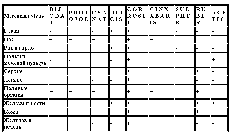 54-я ЛЕКЦИЯ Препараты Ртути (Mercurius) Сегодняшнюю лекцию мы посвятим изучению Ртути и ее соединений. Ртуть уже давно известна, и употребляется как лекарство старой медицинской школой. Злоупотребление этим средством, при применении ее в чрезмерном количестве или в неподходящих случаях, сделало ее весьма непопулярной среди публики. Есть много врачей в так называемой старой школе которые пробовали заменить Ртуть другим препаратом, который бы, служа тем же целям, не имел бы вредных последствий. Их старания сопровождались большим или меньшим успехом, но все-таки им не удалось найти ничего эквивалентного этому средству по его действительной пользе. В последнее время не так уж много врачей-аллопатов, назначающих те большие дозы Ртути, которые прежде были столь обыкновенны. Эта осторожность в назначении не есть следствие изменившегося, в научном смысле, взгляда медицинского мира на этот препарат, а объясняется лишь тем, что врачи принуждены были к этому своими неудачами и ропотом публики. Есть врачи, которые боятся сообщить своим больным, что они лечат их Ртутью. Эклектики заменили ее такими растениями, как Podophyllum и Leptandra, особенно при болезнях печени. Мы, гомеопаты, не боимся применять меркуриальные препараты, так как делаем это согласно определенному закону, который руководит нами при применении их к человеческому организму. Поэтому, те дурные последствия, которые наступают вслед за чрезмерной дозой или неправильным применением этого средства, невозможны в нашей практике. Вы видите, что я поместил в таблице целый ряд препаратов Ртути. Все они обладают некоторыми медицинскими особенностями, но мы не имеем ни времени, ни особенной надобности подробно останавливаться на каждом из них. Для нас особенно важно изучить главные действия Ртути вообще и показать важнейшие характерные признаки, которые давали бы вам возможность оказать преимущество одному из этих препаратов перед другим. Положим, по общему характеру болезни вы находите, что больному нужно назначить какой-либо ртутный препарат и желаете знать, какой именно. Мы имеем здесь два препарата. Mercurius vivus и solubilis, которые я поместил в одну линию, потому что, насколько я знаю, симптоматической разницы между ними нет. Хотя испытание действия их помещены в энциклопедии Аллена отдельно, но я не в состоянии установить между ними разницу. Препараты эти — живое серебро или металлическая ртуть (Mercurius vivus) и растворимая Ртуть Ганемана (Mercurius solubilis Hahnemanni). Mercurius solubilis не чистый ртутный препарат. Он заключает в себе немного аммиака и азотной кислоты. Хотя в нем содержатся только следы Азотной кислоты, все же эти следы должны некоторым образом изменять его симптоматику. Но в какой мере, я не знаю. Исследования Mercurius solubilis превосходны и гораздо более полны, чем испытания металлической ртути. Последние собраны более из явлений отравления и клинических случаев, чем из действительных испытаний. Если, поэтому, симптомы ясно помещены в Энциклопедии при Mercurius solubilis, то я советовал бы вам употреблять этот последний препарат. Ниже Mercurius vivus и solubilis мы имеем на таблице два препарата Ртути с Хлором (М. dulcis и М. corrosivus). Далее идет Mercurius aceticus, для которого мы имеем лишь немного симптомов. После него- два йодистых соединения Ртути, которые очень важны. Двуйодистая Ртуть (Merc. bijodatus) — красного цвета, а Однойодистая (Protojodatus) 