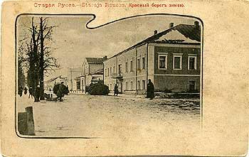 Глава 6. УЛИЦЫ СТАРОЙ РУССЫ В ФОТОГРАФИЯХ - ИСТОРИЯ И СОВРЕМЕННОСТЬ В этой главе воспроизведены 23 старинные открытки с видами Старой Руссы из частной коллекции педагога-старорусца Н.М. Ефремова. Старинные открытки Старой Руссы - особая и интересная тема. Ей посвящен, например, увлекательный альбом А.Г. Сочагина «Старая Русса в открытках конца XIX-начала XX века» (СПб., 2003). Большое собрание старинных открыток Старой Руссы хранится в фондах Старорусского краеведческого музея, часть из них представлена в экспозиции музея. Мы верим, что придет день, когда найдутся средства на еще одно благое музейное дело - реставрацию бывшей водонапорной башни, памятника архитектуры на центральной площади города, являющегося одним из символов древнего города на Полисти, и на создание в башне обзорной площадки и постоянно действующей выставки «Старая Русса на старинных открытках». Помещая некоторые из открыток в нашей книге, мы сопровождаем их современными фотографиями (все снимки сделаны в апреле-мае 2004 г.), выполненными в том же ракурсе, почти с той же точки (по крайней мере - очень близко к ней), что и снимки на открытках. Помещая их рядом, мы даем вам возможность сопоставить изменения и утраты, которые претерпел внешний облик Старой Руссы за минувшие 100-120 лет. Нам показалось, что без нескольких подобных наглядных иллюстраций рассказ о современных и исторических названиях на карте нашего города будет неполным...