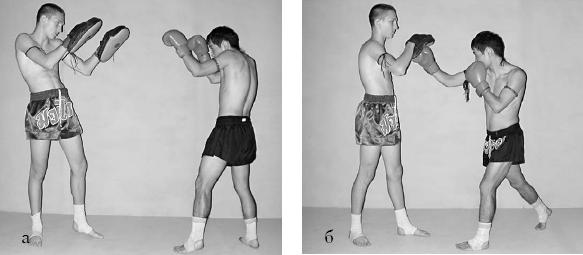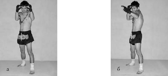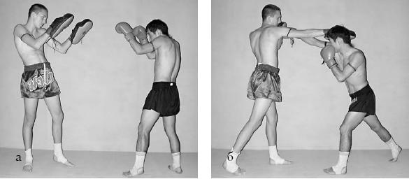 ГЛАВА 2 Техника ударов руками Общее понятие о технике ударов руками Удары руками – важное средство нападения и один из основных компонентов технической оснащенности в большенстве современных единоборств. При нанесении удара рукой необходимо попасть в определенное место тела противника и достичь определенной силы удара с тем, чтобы отрицательно повлиять на его боеспособность. Точность ударного движения зависит от скорости и длительности движения. Чем выше скорость, тем сложнее управлять движением, чем короче ударное движение, тем сложнее оказывать воздействие на него. Поэтому эффективность ударов руками сильно зависит от возможности управлять движением на высоких скоростях его выполнения. В ударном движении участвуют отдельные звенья тела, включающиеся в работу в определенной последовательности. Участие нижней части тела в механике удара происходит по следующей трехсуставной кинематической цепи: стопа – голень – бедро. Эта кинематическая цепь, передавая поступательное движение туловищу, способствует ускорению вращения таза. При опоре на левую ногу вращение происходит вокруг вертикальной оси, проходящей через левую стопу и левый тазобедренный сустав; при опоре на правую ногу вращение происходит вокруг оси, проходящей через правую стопу и правый тазобедренный сустав. От кинематической цепи стопа – голень – бедро движение передается на следующую трехсуставную цепь. При нанесении ударов усилия передаются от стопы на голень и бедро, затем на таз, туловище к поясу верхней конечности и от него – на ударную часть кисти. Таким образом, начиная с первого момента ударного действия (от толчка стопой) и до заключительного, сила и скорость как бы нарастают в каждой цепи. Чем меньше мышцы, тем быстрее они могут сокращаться, но вместе с тем они должны быть достаточно сильными, чтобы поддержать поступательный эффект крупных мышц и ускорить действие, тем самым увеличивая силу удара. В зависимости от направления удара в активную работу включаются те или иные группы мышц, от качественного действия которых зависят скорость и сила удара. Высота цели удара (удар в голову или туловище) существенной роли в структуре ударных движений не играет. Структура движений при ударе различается в зависимости от поставленных задач: произвести удар максимально сильно или максимально быстро в зависимости от тактических задач, возникающих в ходе поединка. Установка в ударном движении определяет величину силы удара и общее время ударного движения. При установке «на силу» ударный импульс наибольший, но и время ударного движения наибольшее. При выигрыше в силе мы проигрываем в скорости. При установке «на быстроту» ударный импульс наименьший, но и время ударного движения наименьшее. Уменьшение показателя силы дает выигрыш в скорости нанесения удара. Характер удара может меняться в зависимости от степени нарастания скорости ударного движения или силы во времени. В поединке применяют три типа ударов. Для ударов первого типа характерно минимальное проявление скорости или силы. По тактическому назначению такие удары являются разведывательными. Для ударов второго типа характерно оптимальное соотношение силы или скорости (75 % от максимальной величины). По тактическому назначению такие удары являются одним из основных средств ведения боя. Для уд