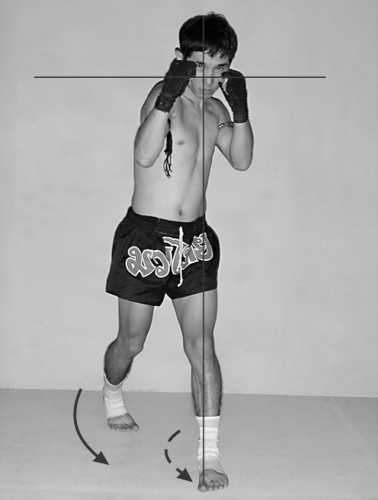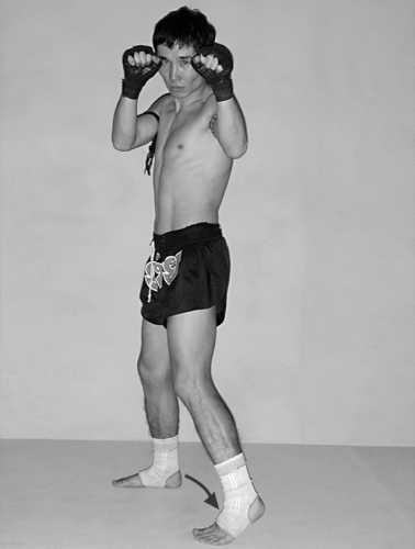 Глава 2. Техника основных положений боевого фитнеса ![]() ![]() К технике основных положений боевого фитнеса относят боевое положение кулака, боевую стойку, передвижения, захваты и боевые дистанции. Боевое положение кулака При ударе кисть получает значительную нагрузку, поэтому необходимо правильно сжимать ее в кулак. Для того, чтобы правильно сжать кисть в кулак, согните пальцы и прижмите их к ладони, большой палец прижмите к средней фаланге указательного. ![]() а) ![]() б) ![]() в) ![]() г) Фото 48. Последовательность формирования кулака Боевая стойка Боевая стойка – положение занимающегося, отражающее его готовность к двигательной деятельности в процессе поединка. Различают левостороннюю и правостороннюю боевую стойку. В дальнейшем мы будем рассматривать только левостороннюю боевую стойку, как наиболее распространенную. ![]() Вид спереди ![]() Вид справа Боевая стойка предполагает такое положение бойца, которое наиболее выгодно для ведения боя, т.е. одинаково удобно как для наступательных действий, так и для обороны и маневрирования. Практически все приемы в бою выполняются из боевой стойки, поэтому изучать и совершенствовать боевую стойку необходимо очень тщательно, добиваясь прочного освоения ее во всех деталях. От правильности освоения боевой стойки во многом зависит и освоение остальных движений. Техника выполнения: в боевой стойке левая нога находится впереди. Расстояние между стопами равно примерно ширине плеч. Носок левой ноги обращен вперед, правой – под углом 30°– 40° вправо. Ноги слегка согнуты в коленях. Вес тела равномерно распределен на обе ноги, но несколько больше нагружена левая нога. Туловище обращено левым боком и слегка грудью к противнику и чуть наклонено вперед. Левое плечо слегка поднято. Гол о ва слегка наклонена вперед, подбородок опущен. Левая согнутая рука вынесена вперед, локоть направлен вниз, левый кулак находится на уровне виска или чуть выше и направлен на противника, правая согнутая рука расположена перед грудью, локоть направлен вниз, кулак правой руки находится на уровне виска. Типичные ошибки при изучении боевой стойки: 1. Перегруженность правой или левой ноги. 2. Ноги не согнуты в коленях. 3. Ноги широко расставлены. 4. Расставленные в стороны локти. 5. Разворот туловища грудью вперед. 6. Голова поднята. ![]() Фото 49. Боевая стойка По мере роста мастерства боевая стойка может несколько изменяться с учетом индивидуальных особенностей занимающегося, его тактических предпочтений, однако ее общий принцип сохраняется полностью. Передвижения В поединке бойцам все время приходится маневрировать. Это происходит потому, что в различные моменты боя бойцу выгодно находиться то ближе, то дальше от противника. Возникает борьба за выгодную для себя дистанцию, которая и выражается в передвижениях бойцов вперед, назад и в стороны. Шаги являются основным приемом маневрирования. Шаги вперед, назад и в стороны, в зависимости от необходимости, могут выполняться большей или меньшей величины. Следует следить за упругостью и мягкостью движений в коленных суставах. При перемещениях не должно быть раскачиваний, наклонов, следует сохранять прямое положение туловища, как бы независимое от выполняемых передвижений. ![]() Фото 50. Шаг вперед ![]() б) ![]() в) Шаг вперед Техника выполнения: шаг вперед выполняется перемещением впередистоящей