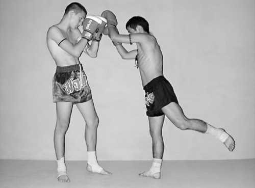Глава 6. Техника ударов коленями ![]() Ударные поверхности колена ![]() а) ![]() б) Фото 267. Ударные поверхности колена Прямые удары коленями и защита от них Прямой удар левым коленом Техника выполнения: примите боевую стойку. Выполните скачок назад, перенесите вес тела на правую ногу одновременно сгибая ногу в колене и вынося вперед-вверх бедро левой ноги. Выполните ударное движение коленом. Опорная нога выпрямлена в коленном суставе, а бьющая – максимально согнута. Таз выведен вперед, живот втянут, плечи находятся на одном уровне, подбородок прижат к груди. Руки имитируют захват головы. Верните ногу в исходное положение по траектории удара и примите боевую стойку. ![]() а) ![]() б) ![]() в) ![]() г) ![]() д) ![]() Вид спереди Фото 268. Прямой удар левым коленом Тактическое назначение: прямой удар левым коленом в бедро. ![]() а) ![]() б) ![]() в) Фото 269. Примите боевую стойку, выполните скачок назад и нанесите удар левым коленом в бедро Прямой удар левым коленом в туловище ![]() а) ![]() б) Фото 270. Примите боевую стойку, выполните скачок назад и нанесите удар левым коленом в туловище Прямой удар левым коленом в туловище с захватом атакующей ноги противника ![]() Фото 271. Примите боевую стойку, выполните захват левой ноги противника и одновременно нанесите прямой удар левым коленом в туловище Прямой удар левым коленом в голову ![]() а) ![]() б) Фото 272. Примите боевую стойку, выполните скачок назад и нанесите прямой удар левым коленом в голову с захватом головы двумя руками Прямой удар левым коленом в голову с захватом атакующей ноги противника ![]() Фото 273. Примите боевую стойку, выполните захват левой ноги и одновременно нанесите прямой удар левым коленом в голову Прямой удар правым коленом Техника выполнения: примите боевую стойку. Перенесите вес тела на левую ногу, одновременно сгибая ногу в колене и вынося вперед вверх бедро правой ноги, выполните ударное движение коленом вперед. Опорная нога выпрямлена, а бьющая – максимально согнута. Таз выведен вперед, живот втянут, плечи находятся на одном уровне, подбородок прижат к груди. Руки имитируют захват головы. Верните ногу в исходное положение по траектории удара и примите боевую стойку. ![]() а) ![]() б) ![]() в) ![]() г) ![]() д) ![]() Вид спереди Фото 274. Прямой удар правым коленом Тактическое назначение: прямой удар правым коленом в бедро. ![]() а) ![]() б) ![]() в) Фото 275. Примите боевую стойку, выполните шаг вперед левой ногой и нанесите прямой удар правым коленом в бедро Прямой удар правым коленом в туловище ![]() а) ![]() б) Фото 276. Примите боевую стойку, выполните шаг вперед левой ногой и нанесите прямой удар правым коленом в туловище Прямой удар правым коленом в туловище с захватом атакующей ноги противника ![]() Фото 277. Примите боевую стойку, выполните захват правой ноги противника и одновременно нанесите прямой удар правым коленом в туловище Прямой удар правым коленом в голову ![]() Фото 278. Примите боевую стойку, выполните шаг вперед левой ногой и нанесите прямой удар правым коленом в голову с захватом головы двумя руками Прямой удар правым коленом в голову с захватом атакующей ноги противника ![]() Фото 279. Примите боевую стойку, выполните захват правой ноги и одновременно нанесите прямой удар правым коленом в голову Отработка прямых ударов коленями с помощью лап Прямой удар левым коленом ![]() а) ![]() б) Фото 280. Примите боевую стойку, выполните скачок назад и за