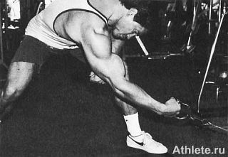 СПИНА МЫШЦЫ СПИНЫШирочайшая (латеральная) мышца спины: большая треугольная мышца, залегающая в среднем и нижнем отделе спины; ее верхние пучки прикрыты трапециевидной мышцей. Это самая большая мышца туловища. Основная функция: приводит плечо к туловищу, тянет его назад и вращает внутрь. Мышцы-разгибатели позвоночника: группа мышц в нижней части спины, защищающая нервные каналы и поддерживающая позвоночник. Эти мышцы медленнее всего восстанавливают силы после интенсивных упражнений. Основная функция: разгибает позвоночник и поддерживает его в вертикальном положении. Примечание: трапециевидная мышца — плоская треугольная мышца, покрывающая верхний отдел спины и заднюю часть шеи, — включена в раздел плечевого пояса. ТРЕНИРОВКА СПИНЫ Широкая, плотная, мускулистая спина абсолютно необходима для качественного телосложения в бодибилдинге. Сильные мышцы спины играют главную роль в поднимании и переноске тяжелых грузов. "Моя спина — это оружие, которым я пользуюсь, чтобы сокрушать соперников, — говорит Франко Коломбо, двукратный обладатель титула "Мистер Олимпия". — Я отвожу руки назад, упираюсь большими пальцами в копчик и начинаю расправлять латеральные мышцы. Это происходит постепенно. Сначала я несколько раз напрягаю их, а потом расправляю еще чуть шире. Каждый раз, когда зрители и судьи думают, что это все, я напрягаю мышцы еще сильнее, и они выступают еще дальше. А когда все начинают ахать от изумления, я поднимаю руки в позе задней демонстрации бицепсов, показывая мускулистость, плотность и изоляцию верхней части спины. Лишь лучшие из лучших могут стоять рядом со мной, когда я делаю это, и не опасаться, что потрясение заставит их сойти со сцены". Когда судьи на соревнованиях по бодибилдингу смотрят на спину участника, их особенно интересуют три вещи: (1) плотность и мускулистость верхней части спины; (2) изгиб и ширина латеральных мышц; (3) рельефность и развитие нижней части спины, включая нижний отдел латеральных мышц. ВЕРХНЯЯ ЧАСТЬ СПИНЫ Развитие верхней части спины — это нечто большее, чем развитие только спинных мышц. Когда вы демонстрируете бицепсы сзади, то мышцы верхней и средней части спины, включая трапециевидные, занимают доминирующее положение, но мускулатура плеч, включая бицепсы и задние дельтоиды, тоже играет важную роль. Центральное положение в мускулатуре верхней части спины занимают трапециевидные мышцы, которые имеют треугольную форму и сходятся примерно посередине спины. При хорошо развитой мускулатуре выпуклые и массивные трапециевидные мышцы уравновешивают изгиб латеральных мышц и четко отделены от них в задних позах. Упражнения, специально предназначенные для трапециевидных мышц, включают любые движения, связанные с подниманием плеч — преимущественно высокую тягу штанги и «шраги» со штангой или гантелями, а также разведение рук с гантелями и некоторые разновидности жимов. Эти упражнения описаны в программе тренировки для плечевого пояса. При демонстрации спины в три четверти вам необходима плотная и рельефная мускулатура верхней части спины, уравновешивающая развитие дельтоидов, бицепсов, трицепсов и предплечий. Серджио Олива — пример впечатляющего развития верхней части спины. ЛАТЕРАЛЬНЫЕ МЫШЦЫ Наиболее впечатляющим элементом спинной мускулатуры является изгиб широчайших мышц. Их шир
