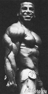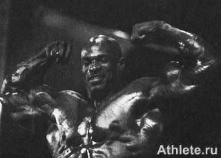 Выполняйте все упражнения для трицепсов со строгой техникой, чтобы полностью нагружать мышцы, и сосредоточивайтесь на полном диапазоне движения. Пользуйтесь принципом пикового сокращения, выдерживая максимальную нагрузку в течение нескольких секунд в конце каждого повторения. Насер эль-Сонбати Руки Криса Дикерсона не назовешь особенно огромными, но его трицепсы — особенно верхний отдел — так хорошо развиты, что в этой позе его руки кажутся очень массивными. Обратите внимание на великолепную изоляцию трицепсов и дельтовидных мышц, которая помогла Крису завоевать титул "Мистер Олимпия" в 1982 г. Для массивности и развития нижней части трицепса Отжимания на брусьях с отягощением. Отжимания на параллельных скамьях: делайте частичные повторения, опускаясь вниз до конца, но поднимаясь лишь на три четверти движения, чтобы подвергать постоянной нагрузке нижнюю часть трицепсов. (Чем больше согнута ваша рука, тем больше нагрузки приходится на нижний отдел трицепсов.) Здесь Шоун Рэй показывает два разных, но одинаково эффективных способа демонстрации трицепсов. Предплечья ТРЕНИРОВКА ПРЕДПЛЕЧИЙЕсли вы хотите иметь действительно качественную мускулатуру, то к предплечьям нужно относиться с такой же серьезностью, как к любой другой части тела. Предплечья участвуют почти во всех упражнениях для туловища, помогая вам держать снаряды либо принимая участие во всех тянущих и толкающих движениях. Они получают значительный объем косвенной тренировки, даже когда вы не делаете упражнений, специально предназначенных для предплечий. Фактически каждый раз, когда вы напрягаете локти или запястья, вы подвергаете нагрузке мышцы предплечья. Хорошее развитие мышц предплечья необходимо для создания чемпионской мускулатуры, но их сила тоже имеет важное значение. Сильные предплечья позволяют вам работать с более тяжелым весом, а в таких упражнениях, как подтягивание или тяга одной рукой на блочном устройстве, где запястье обычно является наиболее слабым звеном, они дают вам возможность тренироваться интенсивнее и подвергать грудные мышцы большим нагрузкам. Как и в случае с другими мышцами, генетическая структура является фактором, определяющим потенциальный размер и силу предплечий. Причина того, что у некоторых мышцы предплечья тянутся до самого запястья практически без сухожильных перемычек, заключается в том, что человек обладает очень длинным "мышечным брюшком", то есть той частью структуры мышца/сухожилие, которая подвергается реальному сжатию. Размер мышцы зависит от длины "мышечного брюшка", поскольку масса является производной объема. Поэтому если ваше предплечье на два дюйма длиннее обычного, то это означает, что вы обладаете дополнительным потенциалом, который впоследствии можно будет измерить в кубических сантиметрах. Руки Ронни Колмана — отличный пример того, как развитие внутренней части бицепсов позволяет создать изоляцию между бицепсами и трицепсами, а также между бицепсами и предплечьями. Многие культуристы с таким сложением утверждают, что им не нужно делать дополнительных упражнений для предплечий: достаточно сгибания рук с тяжелой штангой. Однако я тренировался с Кейси Виатором, который славился невероятно развитыми предплечьями, и видел, как он выполняет сгибание запястий со штангой весом 155 фунтов и сгибание