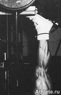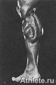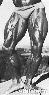 ИКРЫ. МЫШЦЫ ГОЛЕНИ МЫШЦЫ ГОЛЕНИКамбаловидная мышца: более крупная и глубоко залегающая плоская мышца треугольной формы, прикрепленная к малой берцовой кости. Основная функция: сгибание и супинация стопы. Икроножная мышца имеет две головки, одна из которых соединяется с латеральным, а другая — с медиальным аспектом бедренной кости. Обе головки залегают выше камбаловидной мышцы и соединяются с ней в районе ахиллова сухожилия, прикрепленного к пяточной кости. Основная функция: сгибание и супинация стопы. Передняя большеберцовая мышца, расположенная на передней части голени вдоль большеберцовой кости. Основная функция: сгибание и супинация стопы. ТРЕНИРОВКА МЫШЦ ГОЛЕНИ Икры, наряду с дельтовидными мышцами и мышцами брюшного пресса, являются очень эстетичным элементом телосложения. Хорошо развитые икры замечательно выглядят на пляже и теннисном корте, как и на сцене соревнований. Более того, выдающееся развитие икроножных мышц исторически ассоциировалось с идеальным мужским телосложением. Огромные дельтоиды, скульптурные мышцы брюшного пресса и мощные икры были теми качествами, которые греческие скульпторы воплотили в классических образах воинов и атлетов. Кевин Леврон, Дориан Йейтс, Шоун Рэй и Крис Кормье на конкурсе "Мистер Олимпия" 1995 года. Как бы превосходно не выглядела мускулатура их спины и плечевого пояса, без хорошо развитых икроножных мышц общее впечатление оказалось бы гораздо более бледным. По сути дела развитие икроножных мышц должно соответствовать развитию бицепсов. Если окружность ваших икр меньше, чем окружность бицепсов, то они нуждаются в усиленном внимании. (Единственным исключением из этого правила является Крис Дикерсон, у которого икры от природы всегда были больше, чем бицепсы.) Икры считаются наиболее трудной для тренировки группой мышц в человеческом теле. Тем не менее они реагируют на тренировку точно так же, как и остальные мышцы, — просто следует помнить о том, что их нужно тренировать под самыми разными углами и очень большим весом. Подумайте о том, что происходит, когда вы идете или бежите: ваши ступни и голени поворачиваются под разными углами, вы отталкиваетесь от земли, внезапно останавливаетесь, поворачиваете и меняете направление движения. Вы поднимаетесь вверх, спускаетесь вниз, и при каждом из этих движений икроножные мышцы несут вес вашего тела. Они поднимают вас на носки, опускают на пятки и помогают поворачивать ногу. До начала тренировок вместе с Регом Парком у меня были проблемы с размером икр. Я выполнял подъемы на тренажере для икроножных мышц, но Рег работал с весом в 1000 фунтов! Он указал на то, что каждая икроножная мышца может спокойно поддерживать мой вес (250 фунтов), поэтому 500 фунтов фактически было «нормальным» весом для них. Тренируясь с весом 500 фунтов, я фактически не подвергал свои икры дополнительной нагрузке. Рег Парк Основным упражнением для наращивания мышц голени являются подъемы на икроножном тренажере в положении стоя, и здесь дополнительный вес имеет очень важное значение. Это упражнение вместе с подъемами «осликом» разрабатывает как икроножную, так и камбаловидную мышцу. Подъемы на тренажере в положении сидя больше нацелены на разработку камбаловидной мышцы. Многие культуристы занимаются тренировкой мышц голени в качестве дополнения к основной процед