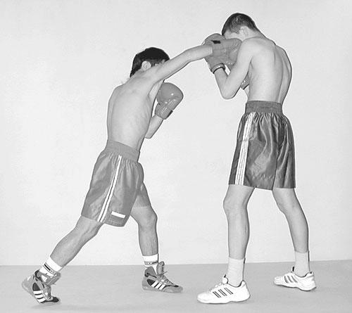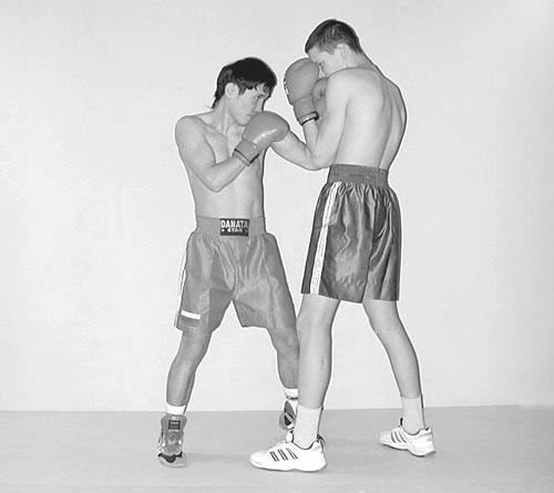 Глава 10 Комбинации и серии из разнотипных ударов Двухударные комбинации разнотипных ударов Боковой удар левой в голову с шагом и прямой удар правой в головуТехника выполнения Из наступательной дальней дистанции с шагом вперед левой ногой нанесите бокой удар левой в голову. Затем нанесите прямой удар правой в голову противника, одновременным перенеся вес тела на левую ногу. ![]() ![]() ![]() Фото 159. Боковой удар левой в голову с шагом и прямой удар правой в голову Боковой удар левой в голову с шагом и прямой удар правой в туловищеТехника выполнения Из наступательной дальней дистанции с шагом вперед левой ногой нанесите боковой удар левой в голову. Затем нанесите прямой удар правой в туловище противника. ![]() ![]() ![]() Фото 160. Боковой удар левой в голову с шагом и прямой удар правой в туловище Прямой удар правой в голову с шагом и боковой удар левой в головуТехника выполнения Из наступательной дальней дистанции с шагом вперед левой ногой нанесите прямой удар правой в голову. Затем перенесите вес тела на правую ногу с боковым ударом левой в голову противника. ![]() ![]() ![]() Фото 161. Прямой удар правой в голову с шагом и боковой удар левой в голову Удар снизу левой в туловище и боковой удар правой в головуТехника выполнения Из наступательной дальней дистанции с шагом вперед левой ногой нанесите удар снизу левой в туловище, с переносом веса тела на левую ногу. Затем нанесите боковой удар правой в голову противника, с переносом веса тела на правую ногу. ![]() ![]() ![]() Фото 162. Удар снизу левой в туловище и боковой удар правой в голову Боковой удар левой в голову и удар снизу правой в головуТехника выполнения Из наступательной средней дистанции нанесите боковой удар левой в голову, с переносом веса тела на левую ногу. Затем, поворачивая туловище справа-налево, нанесите удар снизу правой в голову противника. ![]() ![]() ![]() Фото 163. Боковой удар левой в голову и удар снизу правой в голову Прямой удар правой в туловище и боковой удар левой в головуТехника выполнения Из наступательной средней дистанции нанесите прямой удар правой в туловище, слегка наклоняя туловище вперед-влево. Затем, резко выпрямляясь, нанесите боковой удар левой в голову противника. ![]() ![]() ![]() Фото 164. Прямой удар правой в туловище и боковой удар левой в голову Удар снизу правой в туловище и боковой удар левой в головуТехника выполнения Из наступательной средней дистанции нанесите удар снизу правой в туловище, с переносом веса тела на левую ногу. Затем нанесите боковой удар левой в голову противника, с переносом веса тела на правую ногу. ![]() ![]() ![]() Фото 165. Удар снизу правой в туловище и боковой удар левой в голову Удар снизу правой в голову и боковой удар левой в туловищеТехника выполнения Из наступательной ближней дистанции, с переносом веса тела на левую ногу, нанесите удар снизу правой в голову. Затем, перемещая вес тела на правую ногу, нанесите удар сбоку левой в туловище противника. ![]() ![]() ![]() Фото 166. Удар снизу правой в голову и боковой удар левой в туловище Боковой удар правой в голову и удар снизу левой в туловищеТехника выполнения Из наступательной ближней дистанциии с шагом назад нанесите боковой удар правой в голову. Затем, разворачивая туловище слева-направо, нанесите удар снизу левой в туловище противника. ![]() ![]() ![]() Фото 167. Боковой удар правой в голову и удар снизу левой в туловище Б