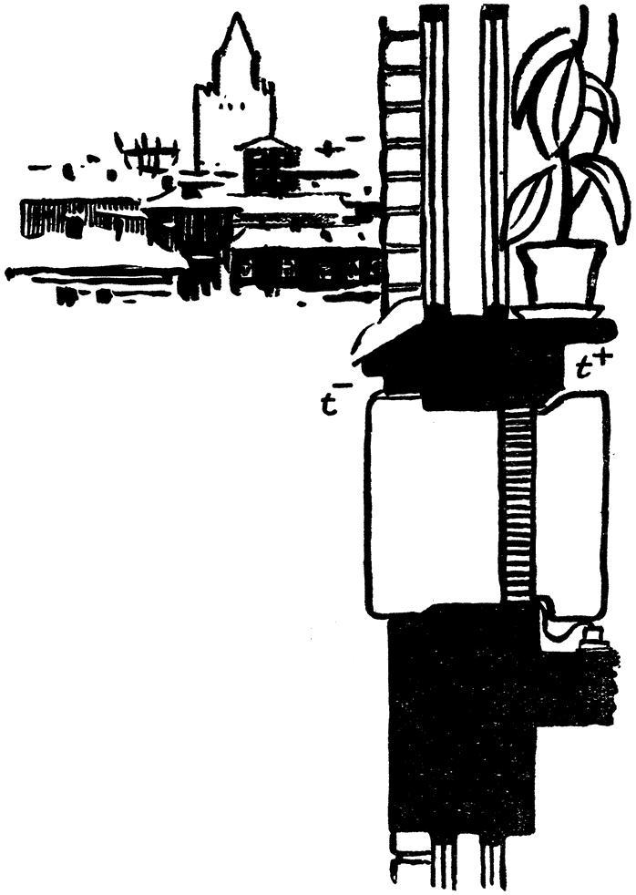 ПОГОНЯ ЗА ТЕПЛОМ {43} В ЛЕСНОЙ ИЗБУШКЕ Мы далеко от города — в таежном краю, в непроходимой лесной чаще. Среди занесенных снегом могучих елей приютилось несколько приземистых избушек охотничьей фактории. Зимний день короток. Рано загораются огоньки керосиновых ламп за морозными узорами окошек. С наступлением темноты совсем тихо, спокойно становится кругом. Тайга спит. Но люди бодрствуют, они живут, связанные незримыми нитями со всей страной. Войдите в любой из домиков. Вы услышите перезвон курантов Спасской башни, голос прославленного ученого из столицы, музыку дальних стран. Радио! Оно особенно дорого в глуши, куда не дотянулись еще линии электропередач. Приемник черпает энергию от электрических батарей. Когда они в порядке, комната полна звуками большого мира. Но случается — батареи подводят. Истощились они, и стало тихо, сиротливо. Еще совсем недавно это считалось неизбежностью. А теперь батарейный приемник может работать без батарей. {45} Термоэлектрогенератор на керосиновой лампе. Под потолком на цепочках висит странного вида керосиновая лампа. В верхней части ее — темная трубка. Она окружена большими металлическими пластинами — словно старинный воротник «жабо» надет на лампу. Из-под «воротника» тянется пара проводов к стоящему рядом приемнику «Родина». Возвращается к вечеру домой охотник или лесник, зажигает лампу. В комнате светло. Проходит несколько минут, и приемник словно пробуждается. Освещается шкала настройки, набирает громкость голос далекого города. Почему ожил приемник? НОВОЕ СВОЙСТВО Раньше мы подробно говорили о двух видах полупроводников — электронном и дырочном. В первом при нагревании освобождаются электроны, во втором — появляются дырки. Сделаем из каждого такого полупроводника по брусочку, поставим их рядом и припаяем сверху к их торцам металлическую пластину. Получилось нечто вроде буквы «П» — так называемая термопара, или термоэлемент. Теперь прижмем спаянные концы брусочков (верхнюю перекладину буквы) к чему-нибудь горячему, а свободные концы, наоборот, охладим. Простейшая полупроводниковая термопара. Справа — столбик электронного полупроводника, а слева — дырочного. В концах столбиков скапливаются освобожденные теплом электрические заряды. Так тепло преобразуется в электрическую энергию. В нагретом конце электронного брусочка появятся {46} освобожденные нагреванием электроны. Они забегают, начнут сталкиваться между собой, разлетаться в разные стороны. И при этом многие перекочуют в холодный конец брусочка — туда, где свободнее, меньше «толкотни». Но мы помним, что электроны — отрицательно заряженные частички. Стало быть, как только в холодном конце брусочка появится их избыток, там возникает отрицательный электрический заряд. В горячем конце дырочного бруска возникают дырки. Они также перемещаются в холодный конец. Но, как вы помните, дырка ведет себя подобно частице, наделенной положительным электрическим зарядом. Значит, холодный конец дырочного брусочка термопары приобретает положительный заряд. Эти заряды тем больше, чем значительнее разность температур горячего и холодного концов обоих брусочков. {47} Итак, на холодных концах термопары появились разноименные электрические заряды. Стоит соединить их проволочкой, и по ней потечет электрический ток. Тепло превращено в электро