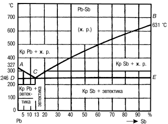 ЛЕКЦИЯ № 5. Сплавы 1. Строение металлов Металлы и их сплавы – основной материал в машиностроении. Они обладают многими ценными свойствами, обусловленными в основном их внутренним строением. Мягкий и пластичный металл или сплав можно сделать твердым, хрупким, и наоборот. Для того чтобы сознательно изменять свойства металлов, необходимо знать основы их кристаллического строения. Как известно, все тела состоят из большого количества атомов, которые удерживаются силами сцепления, совершая колебания большой частоты возле точек равновесия. Поскольку атомы разных металлов различны, каждый металл имеет свои определенные свойства. Эти свойства зависят от расположения атомов между собой, характера их связей, от расстояния между ними. Если изменить расстояние между атомами или порядок их расположения, изменятся и свойства металла. В аморфных телах – смоле, стекле, канифоли и т. п. – атомы расположены беспорядочно. В металлах они находятся в определенном геометрическом порядке, образуя кристаллы, поэтому металлы являются кристаллическими телами. Металлы различаются не только порядком расположения атомов, но и кристаллической решеткой, которая представляет собой воображаемую пространственную сетку, состоящую из элементарных ячеек, в узлах которой находятся атомы. Различают следующие кристаллические решетки металлов с плотной упаковкой атомов: кубическую объемно—центрированную, кубическую гранецентрированную и гексагональную. В ячейке кубической объемно—центрированной решетки атомы расположены в вершинах и центре куба. Такая ячейка содержит девять атомов (хром, вольфрам, ванадий, молибден, литий, а при определенных температурах – железо и другие металлы). В ячейке кубической гранецентрированной решетки атомы находятся в вершинах куба и на пересечении диагоналей каждой плоскости. Такая ячейка имеет 14 атомов (свинец, никель, медь, золото, серебро, пластина, железо при определенных температурах и другие металлы). В ячейке гексагональной кристаллической решетки атомы располагаются в вершинах и в центре шестигранных оснований призмы, а три атома – в средней ее плоскости, при этом такая ячейка содержит 17 атомов (магний, цинк, кадмий, осмий, бериллий и другие металлы). При определенных условиях некоторые металлы – железо, титан, цирконий, стронций, кобальт, кальций и другие могут перестраиваться из одного вида кристаллической решетки в другой, например из кубической объемно—центрированной – в гранецентрированную и даже гексагональную. Элементарная ячейка отображает только один элемент, или одну ячейку, кристаллической решетки. Вся кристаллическая решетка в реальном металле состоит из большого числа многократно повторяющихся элементарных ячеек. Большое значение имеет расстояние между атомами ячейки кристаллической решетки или между параллельными атомными плоскостями, образующими элементарную ячейку. Чем больше это расстояние, тем менее прочен металл. Расстояние между ними измеряется в ангстремах – 1 А = = 10 –8 см или в нанометрах – 1 А = 0,1 нм. Из практики известно, что железо прочнее меди, а медь прочнее алюминия. 2. Кристаллизация и структура металлов и сплавов Порядок расположения атомов – тип кристаллической решетки – природное свойство металла, форма кристаллов и их размеры зависят от процесса перехода металла и
