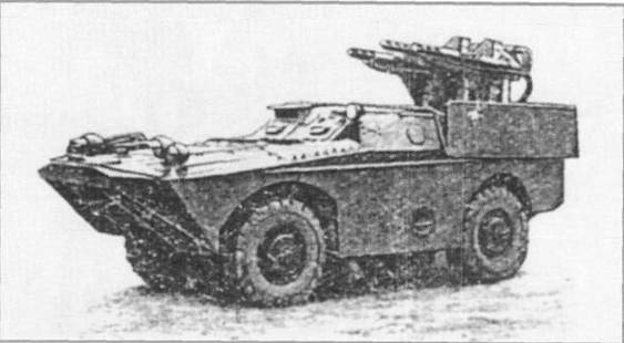 «Шмель» Важнейшим постановлением от 27 мая 1957 г. разработка комплекса противотанкового управляемого вооружения по теме № 7, в дальнейшем получившего наименование «Шмель», была поручена коломенскому Специальному конструкторскому бюро (СКВ) во главе с Б.И. Шавыриным, ранее на протяжении двух десятилетий занимавшемуся разработкой .минометного вооружения во всем его многообразии – от ротного миномета до гигантской самоходной установки «Ока», предназначенной для стрельбы 420-мм минами со специальным зарядом. Создание системы управления для комплекса доверили московскому ЦНИИ-173, имевшему большой опыт разработки рулевых приводов и систем дистанционного управления различного назначения. В этой организации работы по противотанковому комплексу возглавил З.М. Персиц. Боевая машина 2П26 комплекса «Шмель» в походном положении (тент опущен) План работ предписывал провести испытания и представить отчет по ним к концу 1958 г. Среди заданных постановлением 1957 г. противотанковых комплексов «Шмель» рассматривался как наиболее простой. В качестве основного варианта для него предусматривалась система ручного наведения с передачей команд по проводам. Достаточно умеренными представлялись и характеристики по максимальной дальности (1,5 км) и бронепробиваемости (150 мм брони под углом 60°) – эти показатели устанавливались на уровне, вдвое меньшем по сравнению с заданными для большинства других образцов. Такое «послабление» было допущено ради снижения веса ракеты. Управляемый снаряд и наземная система наведения предназначались для стрельбы с легкой пехотной ПУ и должны были допускать перевозку в кузове автомашины. Исходя из возможности длительной переноски ракеты одним бойцом он не должен был превышать 15 кг. Вес пусковой установки также ограничивался величиной 25-30 кг. БМ 2/726 комплекса «Шмель» в походном положении Однако необходимых предпосылок для того, чтобы выполнить важнейшее требование по стартовому весу в период разработки первой отечественной противотанковой ракеты, еще не имелось. Разработчики своевременно осознали это и представили на испытания пусть довольно тяжелый и громоздкий, но работоспособный образец. БМ 2П26 комплекса «Шмель» в походном положении После этапа поисковых работ, в ходе которых рассматривалось множество вариантов конструктивно-компоновочных и функциональных схем, к дальнейшей разработке приняли следующий технический облик снаряда, в значительной мере преемственный по отношению к французской ракете SS- 10. Использование зарубежного опыта должно было снизить технический риск при создании первых образцов принципиально нового оружия [1, 7]. Ракета выполнена по аэродинамической схеме «бесхвостка» с Х-образным расположением четырех консолей крыльев. Кумулятивная боевая часть крепилась легкосъемным соединением к переднему аппаратурному отсеку корпуса. В нем размещались последовательно расположенные бортовая батарея, две катушки с проводами связи с наземной аппаратуры наведения и блок управления. В блок управления входили приемная аппаратура, состоящая из двух усилителей, и гироскопический блок, обеспечивавший управление и стабилизацию по крену. Гироскоп раскручивался до старта ракеты от наземного источника тока, а в полете работал на «выбеге», то есть вращался по инерции. Катушка представляла собой 