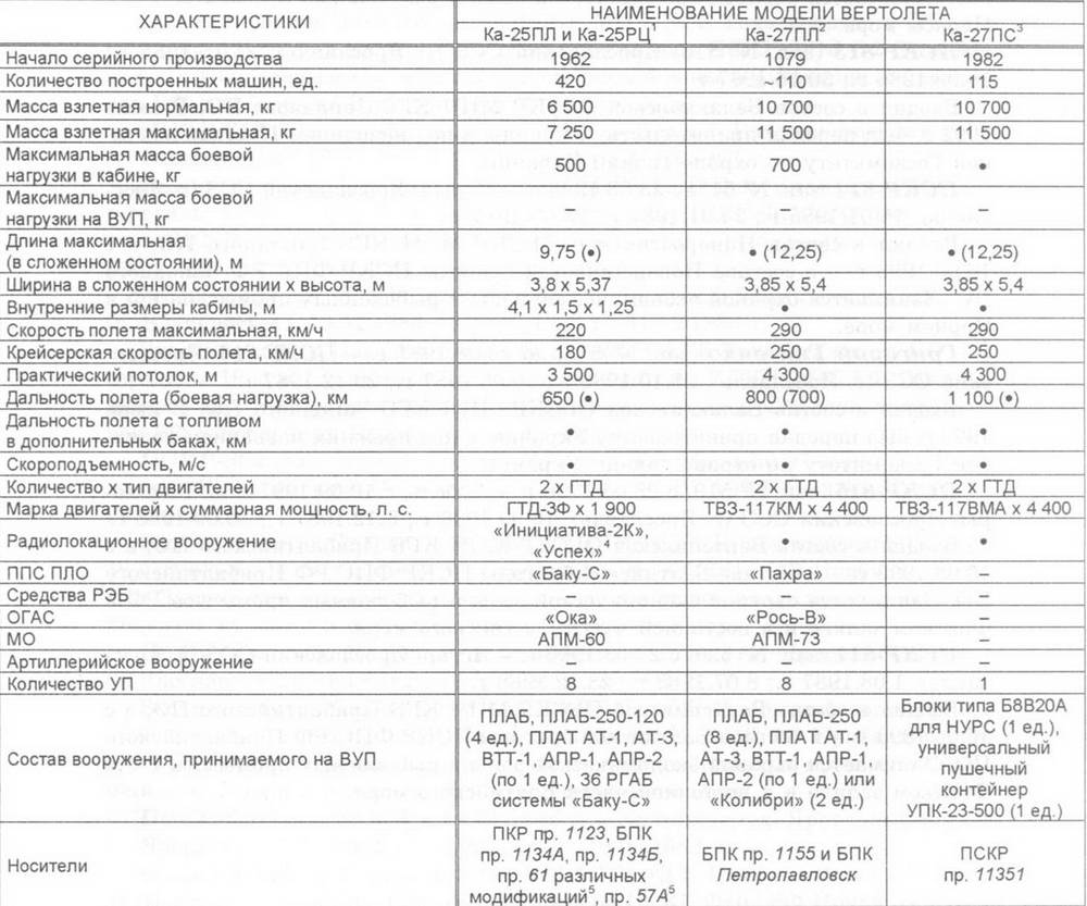 ПРИЛОЖЕНИЕ Основные характеристики корабельных вертолетов 1 Ка-25ПЛ из-за небольшой боевой нагрузки мог использоваться либо в ударном, либо в противолодочном вариантах. Ка-25РЦ вооружения не имел, предназначался для установки на РКР пр. 58, пр. 1134, пр. 1144 и пр. 1164. 2 Предназначен для обнаружения ПЛ и их уничтожения на глубинах до 500 м и скорости хода до 75 км/ч. В простых и сложных метеоусловиях (при волнении моря до 5 баллов) мог удаляться от места взлета на расстояние до 200 км. Модификация Ка-27, оборудован для выполнения спасательных операций на море (в частности, спасательной лебедкой грузоподъемностью 300 кг). Рассчитан на перевозку 12 пассажиров. При необходимости может быть вооружен ПКРК «Уран» с двумя ПКР Х-35 (аналог ПКР ЗМ24 – см. таб. основных характеристик ПКРК). Гражданские модификации имеют индексы Ка-32 и Ка-32С (с поисковой РЛС). 4 Для Ка-25РЦ. 5 Обеспечена возможность базирования. Схемы внешнего вида корабельных вертолетов Основные характеристики противолодочных ракетных комплексов 1 Из РТПУ ПЛРК «Водопад» кроме ПЛУР могут выстреливаться торпеды СЭТ-65. 2 Данная БЧ предназначена для поражения НК. 3 Устанавливался в процессе модернизации кораблей. Используемые в таблице сокращения КПУ – контейнерная ПУ; НКПУ – наводящаяся КПУ; РПУ – рельсовая ПУ; ПААГСН (ААГСН) – пассивно-активная (активная) акустическая головка самонаведения; ИНС – инерциальная система; ИКГСН – инфракрасная ГСН; РКМ – радиокомандная СУ; МГТ – малогабаритная торпеда. Основные характеристики зенитных ракетных комплексов 1 ЗРК «Волна» был создан на базе сухопутного ЗРК войск ПВО С-125 и постоянно модернизировался (помимо СУ, главным образом, в части ЗУР). В 1968 г. создана модификация В 601, в 1980 г. – В 601М. У принятой на вооружение в 1976 г. модификации ЗРК «Волна-П» была усилена помехозащищенность. Проводимые модернизационные работы позволили не только увеличить дальность стрельбы, но и обеспечить поражение низколетящих воздушных и надводных целей в условиях РЭП, что дало основание классифицировать этот ЗРК как универсальный. Модификация ЗРК «Волна-Н» (на вооружение не поступала) могла использовать ЗУР В 611 «Шторм». 2 Изначально создавался специально для ВМФ с возможностью поражения надводных целей как УЗРК. 3 ЗРК «Форт» (С-300Ф) создан на базе комплекса войск ПВО С-300. В нем впервые в мире реализован вертикальный старт ЗУР из ТПК в ВПУ, использована помехозащищенная многоканальная СУ, способная одновременно сопровождать 12 и обстреливать шесть целей и обеспечивать использование ЗУР для поражения надводных целей. 4 Корабельная часть СУ состоит из ЦП и прожекторов подсвета цели. Количество каналов по цели определяется количеством прожекторов подсвета. Кроме того, в качестве целевого канала могут использоваться РЛС семейства «Фрегат». Экспортная модификация – ЗРК «Штиль». 5 Устанавливался в процессе модернизации кораблей. Схемы наружного вида ЗУР 9М311 (ЗРАК «Кортик») 9М330 (ЗРК «Кинжал») 9МЗЗ (ЗРК «Оса-М/МА») 9М38М (ЗРК «Ураган») 5В 55РМ (ЗРК «Форт») В 611 (ЗРК «Шторм») В 600 (ЗРК «Волна») Основные характеристики зенитных ракетных комплексов Продолжение 1 Разрабатывался по единым требованиям ВМФ и сухопутных войск. Блок СУ и АУ включает радиолокационные станции наведения ЗУР и кругового обзора для обнаружения ВЦ в ближней зоне. 2 В ЗРК «Кинжал» использованы принципиальные схемные решени