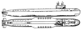 ПРОЕКТ 667М «АНДРОМЕДА» ТАКТИКО-ТЕХНИЧЕСКИЕ ДАННЫЕ ПЛ ПРОЕКТА 667М «АНДРОМЕДА». Код НАТО: 1 – класса «ЯНКИ-НОЧЬ» («ГРУША», «К-420» – ПРОЕКТ 667АТ). Водоизмещение: 13650 т. Размеры: 153x15x8 м. Вооружение: 12 ПУ ракет ССН-Х-24, 6-533 мм ТТ. Торпеды типа «53» (533 мм). Дальность ракет – 2000 миль. Силовая установка: 2 реактора ПВР, 2 паровых турбины, 2 винта, 35000 л.с. Скорость: 23 узла. Экипаж: 130 человек. Акустическое оборудование: 1 радар, 2 сонара. Строительство: построена в 1970 году, модернизирована в 1983 году из ракетной ПЛ класса «Янки-1», Северный флот. ВЫДВИЖНЫЕ МАЧТЫ И АНТЕННЫ СОВЕТСКИХ АТОМНЫХ ПОДВОДНЫХ ЛОДОК 1 – Высокочастотная антенна 2 – Сигнальный прожектор 3 – Сигнальный прожектор 4 – «Рамка» – бугельная антенна 5 – «Мусорный ящик» – обзорный перископ 6 – «Мячик для гольфа» – зенитный перископ 7 – ESM антенна 8 – Антенна слежения 9 – РЛС кругового обзора 10 – Антенна 11 – Приемная антенна 12 – Узконаправленная антенна 13 – Радиопеленгатор СПЕЦИАЛИЗИРОВАННЫЕ АТОМНЫЕ ПОДВОДНЫЕ ЛОДКИ ТАКТИКО-ТЕХНИЧЕСКИЕ ДАННЫЕ ПЛ ПРОЕКТА 678 (АС-11)Код НАТО: 1 – класса «ИКСРЭЙ». Водоизмещение: 1000/1450 т. Размеры: 40x3x5 м. Силовая установка: 1 реактор. Назначение: Специальная ПЛ, без вооружения. Строительство: построена в Ленинграде в 1982 году. ТАКТИКО-ТЕХНИЧЕСКИЕ ДАННЫЕ ПЛ ПРОЕКТА 1910 (АС-15)Код НАТО: 1 – класса «УНИФОРМ». Водоизмещение: 1900/2500 т. Размеры: 73x7x5 м. Силовая установка: 1 реактор, 10000 л.с. Скорость: 40 узлов. Назначение: специальная ПЛ, без вооружения. Предназначается для разведывательно-диверсионных целей, малошумная, автоматизированная. Экипаж: 36 человек (офицеры). Строительство: построена в Ленинграде (завод «Судомех») в 1970 г. Проект 659Т «Эхо-I» Проект 675М «Андромеда», «Эхо-II» |