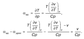 55. Дросселирование газа и уравнение процесса Для водяного пара критическая температура составляет Тк = 647 К, соответственно, Тинв > 4400 К (температура инверсии). В процессе дросселирования всегда происходит охлаждение водяного пара, это связано с полной диссоциацией молекул пара при таких не очень высоких значениях данной температуры инверсии. Дросселирование водяного пара характеризуется следующими свойствами, полученными из анализа диаграммы (i, s): 1) для любого состояния пара дросселирование всегда понижает температуру водяного пара; 2) дросселирование влажных паров при небольших давлениях сопровождается переходом из увлажненного в сухое, а затем в перегретое состояние. Влажные пары при высокихдавленияхсначала еще более увлажняются, но потом такжеобразуют сухую и перегретую фазу; 3) дросселирование перегретых паров при больших давлениях (если температура перегрева невелика) сопровождается прохождением ими несколькихфаз (сухого насыщенного, влажного, сухого и наконец, перегретого). Последнее состояние пара характеризуется низкими значениями температуры и давления. В общем случае при дросселировании перегретые пары сохраняют свое перегретое состояние, если в начале процесса их давления были высокими. Обычно на is-диаграмме процесс дросселирования i1 = i2 представляет собой горизонтальную линию, направленную в сторону возрастания энтропии (вследствие необратимости процесса). Известно, что давление перегретого пара (и его полезная работа) в процессе мятия снижается. аад < aдрос, где адрос - температурный эффект адиабатного необратимого расширения (т. е. дросселирования), а аад– эффект адиабатного обратимого расширения. Отсюда при одном давлении dp имеем: dTдрос < dTад на величину v/cp. ![]() |
