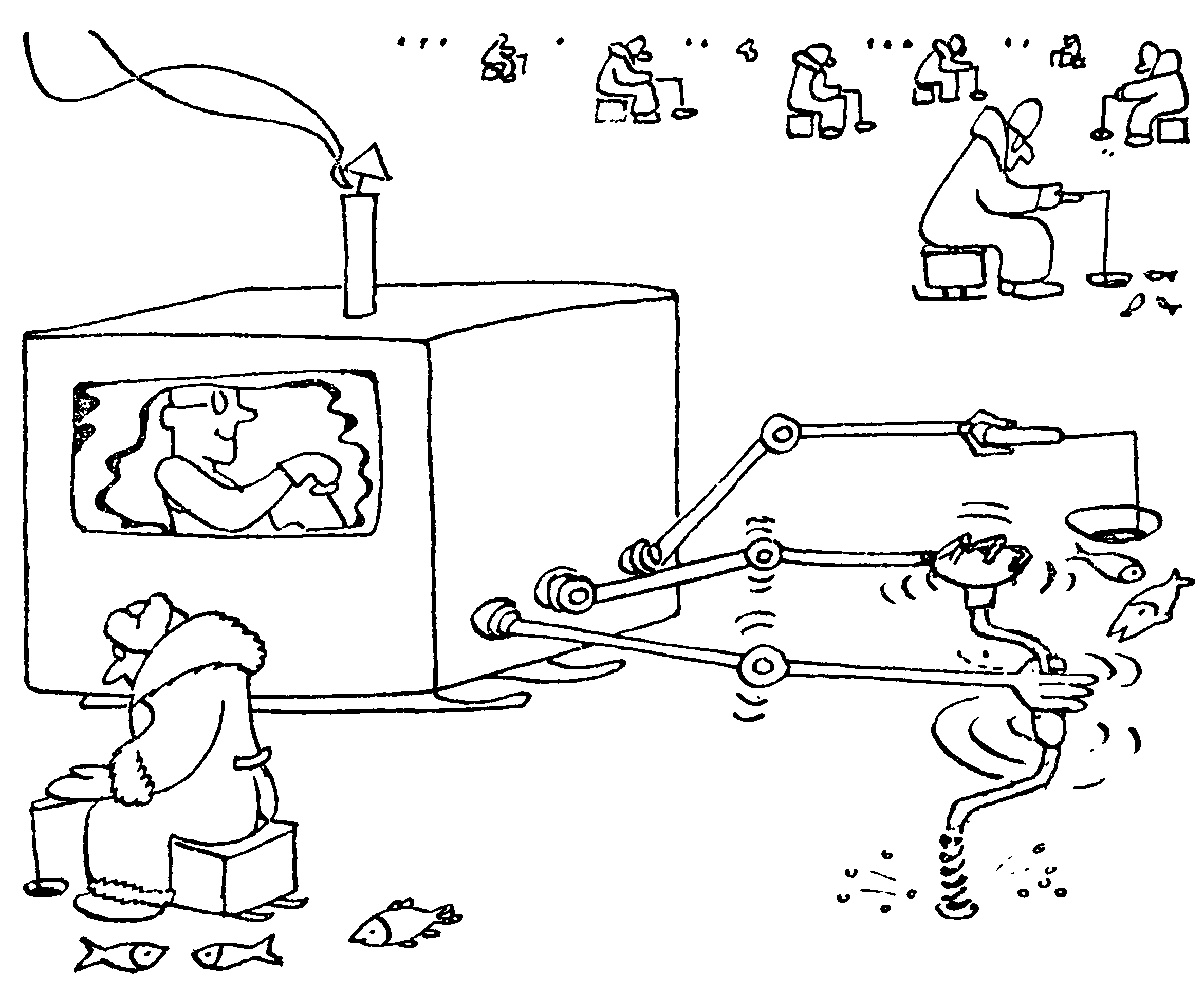 Полуроботы Механическая рука Человек появился на земле не так просто, как об этом рассказывается в библии. Не одна тысяча лет прошла, пока наш далекий предок догадался встать на задние конечности, выпрямиться, взять передними конечностями палку или камень и начать ими орудовать, приспосабливая для своего обитания окружающий мир. Эта работа не прошла для него даром. В результате ее он стал человеком и обзавелся уникальными орудиями труда — руками. Мы теперь знаем, насколько сложна и совершенна их конструкция, какой гибкостью и подвижностью они обладают. Любая попытка построить робот — это в первую очередь попытка разработать конструкцию механической руки, чтобы она, подобно человеческой, могла совершать множество разнообразных движений в окружающем пространстве. Рука человека не предназначена специально для выполнения какого-то определенного набора операций. Она является универсальным орудием, и именно поэтому человек может так ловко действовать, манипулировать самыми различными объектами, предметами, инструментами, чем угодно. Каким же минимумом подвижности нужно оснастить механическую руку, чтобы, с одной стороны, не очень усложнить задачу конструктора, а с другой — чтобы все-таки обеспечить этому орудию труда достаточно высокую универсальность? Такой минимум легко установить. Свободное тело в пространстве обладает шестью степенями подвижности. Книжка, которую вы сейчас читаете, лежит на столе. В любую точку пространства можно ее переместить, сдвигая вдоль стола (одна степень подвижности), поперек стола (другая степень подвижности), поднимая в направлении, перпендикулярном плоскости стола (третья степень подвижности). Но чтобы книжку поставить, например, на полку, ее нужно не только перенести с одного места на другое, но еще и установить на этом новом месте желательным образом. При этом может оказаться необходимым поворачивать ее в собственной плоскости (четвертая степень подвижности), относительно линии корешка (пятая степень подвижности) или относительно линии верхнего или нижнего ее обреза (шестая степень подвижности). Рукой мы свободно можем взять книжку со стола и поставить на полку. Три степени свободы в плечевом суставе и три в лучезапястном составляют шесть степеней свободы, которых должно хватить, чтобы сделать необходимые для этого движения. Но попробуйте сделать это, не сгибая руку в локте, то есть не вовлекая в движение еще одну степень свободы. Вы убедитесь, что это неудобно, часто просто невозможно. Механическую руку не обязательно делать в точности подобной естественной. Суставы живой руки, как и все суставы нашего тела, устроены так, что сочленяемые ими кости могут только поворачиваться на некоторый угол одна относительно другой. Они не могут вращаться и не могут двигаться поступательно, как может, например, двигаться гладкий валик, вставленный в гладкую трубку. В отличие от живой руки в конструкциях механических рук используют самые различные сочленения подвижных звеньев, допускающие их качательные, вращательные и поступательные движения. Почему в живом механизме использованы только шарнирные сочленения с ограниченной подвижностью? Да, наверное, все из тех же конструктивных соображений. Представьте себе, что ваша голова относительно туловища может свободно вращаться или хотя бы соверша