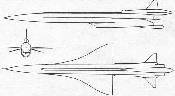 СЕМЕЙСТВО СВЕРХЗВУКОВЫХ 'ЯСТРЕБОВ' (Разработки АО АНТК им.А.Н.Туполева в области беспилотной техники) Владимир Ригмант ![]() Осенью 1997 г. крупнейшее в России самолетостроительное ОКБ, созданное и долгие годы руководимое академиком А.Н.Туполевым, отмечает свое 75 летие. За три четверти века в стенах этой прославленной организации было проработано до различной степени готовности более 300 проектов различных типов летательных аппаратов. Из них более 80 были реализованы в металле и летали, более 30 типов были запущены в серийное производство, многие из которых долгие годы были важнейшей составляющей советской воздушной мощи. Одной из малоизвестных страниц творчества туполевской организации (в настоящее время АО АНТК им АН. Туполева) стало проектирование и создание целой серии беспилотных летательных аппаратов различного назначения. В предлагаемой нашим читателям серии статей, посвященных этому направлению работ всемирно известной фирмы, мы постараемся в пределах имеющихся материалов осветить различные аспекты и направления работ АО АНТК им. А.Н.Туполева в области беспилотной техники. Первая статья нашего цикла посвящается работам фирмы в области сверхзвуковых беспилотных ударных и разведовательных самолетов, спроектированных и запущенных в серию в конце 50-х - начале 60-х годов. Самолет 121 В 1956-1957 гг. в ОКБ А.Н.Туполева (ОКБ-156) было создано новое подразделение, задачей которого была разработка беспилотных летательных аппаратов различного назначения. Вскоре это новое подразделение постепенно превратилось в полноценное КБ внутри ОКБ А.Н.Туполева. Оно стало как бы уменьшенным слепком ОКБ-156, практически по своей организационной структуре, повторяя набором своих проектных бригад "большое" ОКБ. Новое творческое формирование возглавил А.А. Туполев.Во вновь организованный коллектив пришло работать большое количество молодых способных и энергичных инженеров, которые вместе с опытными работниками ОКБ составили основной костяк отдела, получившего внутри туполевского ОКБ шифр "Отдел К". Одним из направлений "отдела К" стало создание целой серии проектов беспилотных самолетов различного назначения,рассчитанных на крейсерские сверхзвуковые скорости соответствующие М=2,5-3,0, с обеспечением дальности полета на подобных скоростях 3000-5000 км. Первыми из них этого ряда проектов стали беспилотный ударный "самолет 121" (изделие "С"), предназначавшийся для поражения стратегических целей на дальностях до 4000 км, и "самолет 123" (изделие "Д"), предназначавшийся для поражения целей на межконтинентальных дальностях. Впервые в практике ОКБ А.Н.Туполева предстояло создать беспилотные самолеты, со сверхзвуковой крейсерской скоростью полета, сложнейшие наземные стартовые средства, обеспечивавшие подготовку и пуск, наземные контрольно-проверочные комплексы систем и оборудования для поддержания беспилотного самолета в боеготовном состоянии. Эти ударные стратегические комплексы должны были стать первыми отечественными мобильными беспилотными комплексами стратегического назначения. Таким образом перед туполевским коллективом ставилась задача по созданию и развертыванию сложнейших систем оружия, ничем не уступавшим по своей сложности ракетным комплексам наземного базирования на основе баллистических ракет. Официально задание ОКБ А.Н.Туполева на 