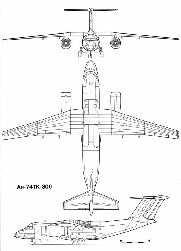 Ан-74. Пополнение в семействе Николай И.Онопченко, Александр С.Макиян, Валерий Н. Кошарный, Евгений А.Головнев/ АНТКим. О.К.Антонова Эффект КоандаОчень часто люди, недостаточно глубоко посвященные в вопросы аэродинамики, недоумевают по поводу расположения двигателей на самолетах Ан-72 и Ан-74. А ведь именно такое расположение их обеспечивает, при определенных условиях, выигрыш в подъемной силе крыла за счет увеличения скорости воздушного потока на его верхней поверхности, а также за счет отклонения реактивной струи вниз при ее «прилипании» к этой поверхности при отклоненных закрылках. Этот эффект аэродинамики называют эффектом Коанда. Использовать его авиаконструкторы ряда стран пытались еще до появления Ан-72. Американцы, например, создали экспериментальный четырехдвигательный транспортный самолет YC-14, а японцы – близкий к нему по схеме СХ-1, тоже экспериментальный. По различным причинам эти аппараты не пошли в серию, а вот Ан-72 и Ан-74 в общей сложности было построено около 170 экземпляров. Это достаточно большое количество для самолета столь нетрадиционной схемы. Но что реально дало такое расположение двигателей? По современной терминологии, Ан-72 и Ан-74 относятся к самолетам класса STOL (short take off and landing – короткого взлета и посадки). И действительно, в ходе испытаний (1977-80 гг.) на первом варианте Ан-72 удавалось выполнить посадки с длиной пробега всего 120 м, а взлеты – с разбегом около 400 м. Правда, как и за все в жизни, за выигрыш во взлетно-посадочных характеристиках (ВПХ) пришлось заплатить повышенным расходом топлива в крейсерском полете: реактивная струя омывала большие участки крыла и фюзеляжа, в результате росло сопротивление трения. Однако на это закрыли глаза, так как при разработке Ан-72 ставка делалась на достижение качеств, необходимых ему в первую очередь как оперативному военно-транспортному самолету, среди которых хорошие ВПХ считались чуть ли не самыми главными. Позже, при создании на базе Ан-72 специализированного самолета для работы в Арктике и Антарктике -Ан-74, перед конструкторами встала задача повышения его дальности полета, а значит, уменьшения расхода топлива. Тогда-то впервые и возникла идея переноса двигателей под крыло, позволявшая исключить контакт высокоскоростной реактивной струи с поверхностью самолета и снизить сопротивление трения. Но, с другой стороны, в полярных условиях самолету ничуть не менее, чем экономичность, нужны были и хорошие ВПХ. Этого требовали постоянные посадки на ледовые и заснеженные аэродромы, а часто и на дрейфующие льдины весьма ограниченных размеров. Противоречие это разрешилось довольно оригинальным образом. Дело в том, что создание Ан-74 совпало по времени с запуском в серийное производство Ан-72, и ради снижения производственных затрат было принято решение в значительной степени унифицировать оба самолета. На них эффект Коанда и, соответственно, хорошие ВПХ были сохранены, а приемлемой дальности полета достигли путем увеличения размаха крыла. Не последним доводом в пользу сохранения двигателей на прежнем месте стал успех испытаний YC-14, который как раз в то время имел шансы поступить на вооружение ВВС США. Предполагаемый характер применения Ан-74 определял и другие его черты: количество членов экипажа и компоновку, характерной особенностью которой является расположение част