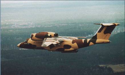 Проем грузолюка Ан-72 позволяет загружать микроавтобус Другие военные версии На базе транспортного варианта было разработано еще несколько военных модификаций Ан-72, из которых наиболее существенными отличиями конструкции обладал оперативно-тактический самолет дальнего радиолокационного обнаружения Ан-71. Требования к нему военные заказчики выдали под влиянием опыта войны в Ливане, где израильтяне успешно применяли американские самолеты ДРЛО Е-2С «Хокай». Для размещения на самолете радиотехнического комплекса (РТК), созданного московским НПО «Вега», антоновские конструкторы использовали ряд оригинальных решений. Наиболее смелым стало применение киля обратной стреловидности, на вершине которого установили антенну РТК в большом дискообразном обтекателе. Как вспоминал ведущий конструктор машины А.И.Науменко, когда чертеж общего вида Ан-71 принесли на утверждение О.К.Антонову, он задумчиво посмотрел на него и произнес: «Да… экзотика…». Претерпел самолет и другие изменения, в частности, для увеличения энерговооруженности его оснастили более мощными маршевыми двигателями Д-436К и дополнительным «разгонником» РД-36А (вариант подъемного двигателя самолета Як-38). Первый опытный Ан-71 (№01) переделали из первого летного прототипа Ан-72. При этом изготовили новую хвостовую часть, оперение, а перед крылом в фюзеляж установили 990-мм вставку. Работы завершились 23 июня 1985 г., а 12 июля экипаж летчика-испытателя А.В.Ткаченко совершил на этой машине первый полет. Метод переделки использовался и при постройке еще двух экземпляров Ан-71: предназначенный для статиспытаний №02 получили из Ан-72 №001, а второй летный №03 – из поставленного харьковчанами поагрегатно серийного Ан-72. Испытания самолетов и отработка нескольких вариантов РТК велись до конца 1990 г. За это время на двух машинах были выполнены 749 полетов общей продолжительностью более 1000 часов. Комплекс продемонстрировал возможность сопровождать одновременно 120 воздушных целей, обнаруживать их в радиусе 350 км на высотах от 0 до 30 км. По оценкам профильных институтов Минобороны и МАП, он позволял повысить боевую эффективность истребителей в 2,5-3 раза. Однако до передачи Ан-71 на Госиспытания и, тем более, до запуска в серийное производство дело не дошло. Причиной тому стали общеэкономические проблемы, характерные для последнего года существования СССР и постсоветского периода. В 1983-84 гг. прорабатывался также палубный вариант Ан-71. Конструкторы пришли к выводу, что в близком к исходному виде он может работать с авианосца, оснащенного катапультой. Как известно, в то время в Советском Союзе создавался тяжелый авианесущий крейсер «Тбилиси» (ныне – «Адмирал Флота Советского Союза Кузнецов»), который был оборудован только трамплином. Чтобы работать с такого корабля, следовало значительно повысить энерговооруженность самолета (как один из вариантов рассматривалось оснащение его тремя разгонными двигателями). Изучив техпредложение антонов- цев, военные пришли к выводу о нецелесообразности дальнейшей разработки палубного самолета ДРЛО на базе сухопутного Ан-71. (Подробнее об Ан-71 можно прочесть в «АиВ», №6'95). Намерения военных заказчиков в отношении развития Ан-72 были очень большими. На основе базовой модели рассматривалась возможность создания целого ряда самолетов различного назначения: по