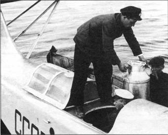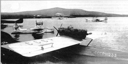 Раскапотированный двигатель М-34 Второй пункт так и не был выполнен, поскольку основные силы ОКБ были брошены на создание корабельного разведчика КОР-2 (Бе-4), а серийное производство МБР-2 вскоре прекратили. Последовавший за этим перевод ОКБ Бериева на завод №288 в Савелово под Москвой, а потом начавшаяся война окончательно поставили крест на планах модернизации МБР-2. В гражданской авиации Первая летающая лодка Бериева заинтересовала не только военных, но и гражданских заказчиков. Поскольку пассажирский вариант самолета прорабатывался еще на стадии подготовки серийного производства, гидросамолет для ГВФ, получивший обозначение МП-1 (морской пассажирский), был спроектирован в очень короткие сроки. Чертежи поступили на завод №31 почти одновременно с началом выпуска первых МБР-2-М-17. Гражданская модификация с двигателем М-176 имела довольно комфортабельную шестиместную пассажирскую кабину, размещенную в центральной части лодки под центропланом. Экипаж состоял из двух человек Машина могла перевозить до 540 кг платной нагрузки. Благодаря тому, что на МП-1 отсутствовали турели и бомбодержатели, максимальная скорость (при той же взлетной массе) оказалась немного большей, чем у разведчика. Следующей гражданской модификацией МБР-2 стал транспортный гидросамолет МП-IT. Под этим обозначением эксплуатировались снятые с вооружения МБР-2-М-17 ранних серий. С них снимали все вооружение, в зоне кабины стрелка-радиста создавали грузовую кабину с усиленным полом и приспособлениями для крепления грузов. По существовавшим нормам, МП-IT брали на борт до 500 кг. Сразу же после запуска в серию МБР-2-М-34 его разработчик и ГВФ вышли с предложением о создании пассажирского варианта машины. Первоначально ГУАП отнеслось к этому отрицательно, указывая на напряженный план завода №31 по выпуску боевых самолетов. Тем не менее, в 1936 г. на основе МБР-2-М-34 была создана и серийно строилась шестиместная пассажирская летающая лодка МП-1 бис, оснащенная невысотным двигателем АМ-34Б. Кроме стандартных МП-1 и МП-1 бис, в гражданской авиации использовались единичные экземпляры летающих лодок, приспособленные для решения специальных задач. Так, несколько МП-1 бис, оборудованных аэрофотоаппаратами, находились в распоряжении Главного управления геодезии и картографии. Начиная со второй половины 1930-х гг., МП-1, а затем и МП-1 бис стали поступать в управления гражданской авиации на Севере, в Сибири и на Дальнем Востоке – в места, где не хватало аэродромов, зато изобилующие реками и озерами. Благодаря МП-1, начали действовать воздушные линии по реке Лене из Иркутска до бухты Тикси и по Енисею из Красноярска до Дудинки. Летающие лодки возили пассажиров из Хабаровска в Николаевск-на-Амуре и на Сахалин, работали на почтово-пассажирских линиях Мурманск- Ленинград, Мурманск-Архангельск, Ленинград-Петро- заводск. Работали они и на Юге, обслуживая линии Одесса-Сухуми-Батуми и Одесса-Ялта. Помимо пассажиров, МП-1 возили почту и самые различные грузы – от пушнины и золота до прессованного сена. Иногда дело доходило до курьезов. Однажды один ретивый хозяйственник поинтересовался, можно ли на гидросамолете перевезти лошадей. На что ему, не без юмора, ответили, что это возможно, но только лошади должны быть в разобранном виде. Широко использовала МП-1 Полярная авиация и авиационные подразделения 