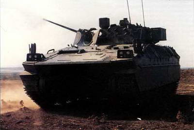 БМП «Дардо» может быть вооружена двумя однотрубными пусковыми установками противотанковых ракет TOW, устанавливаемых по бортам башни, что дает ей возможность поражать танки на удалении до 3430 м. В 1985 году компании «Отобреда» и IVECO получили контракт от сухопутных войск Италии на создание трех прототипов боевой машины пехоты, способной эффективно действовать в условиях современного боя. К 1988 году машины, получившие обозначение VCC-80, были готовы к испытаниям. Они были оснащены двухместной башней с 25-мм пушкой и спаренным с ней 7,62-мм пулеметом, а также системой управления огнем, аналогичной установленной на основном боевом танке «Ариете» и бронированной машине «Кентавр». Тогда же было принято решение взять шасси VCC-80 за основу при создании новой БМП, обладающей большей огневой мощностью за счет установки на ней в дополнение к пушке и пулемету противотанкового ракетного комплекса TOW. В конце 1988 года консорциум IVECO- Oto получил заказ на 200 БМП «Дардо», в число которых входила базовая модель с двухместной башней (25-мм пушка и спаренный с ней 7,62-мм пулемет) и четыре специализированные версии машины (самоходные противотанковый ракетный комплекс и 120-мм миномет, командно-штабная и санитарная машины). Противотанковая версия имеет две однотрубные пусковые установки управляемых ракет TOW, расположенные побор- тно, и возможность установки системы управления огнем HITFIST компании «Галилео авионика» в качестве альтернативы комбинированному дневному и ночному прицелам фирмы «Коллсман», поставляемым в сухопутные войска Италии. Вариант с итальянской системой получил название «Дардо» HITFIST Сварные корпус и башня «Дардо» выполнены из алюминиевой брони. Защита наиболее уязвимых мест корпуса и башни усилена стальными броневыми листами. В передней части корпуса слева расположено отделение управления, а справа - мо- торно-трансмиссионное отделение (дизельный двигатель IVECO мощностью 388 кВт/520 л. е.). Такой же двигатель установлен на бронированной машине «Кентавр». В средней части машины размещена башня ТС 25 компании «Отобреда» с электрическим приводом. Командир в ней размещается слева, а наводчик - справа, но при необходимости управлять башней сможет и один из них. Основным вооружением является 25-мм автоматическая пушка КВА швейцарской фирмы «Эрликон-Контравес», с которой спарен 7,62-мм пулемет MG 42/59. Углы наведения по вертикали стабилизированной в двух плоскостях пушки составляют от -10° до +60°. По бортам башни установлены две однотрубные пусковые установки противотанковых ракет TOW (углы наведения по вертикали от -7,5° до +30°) и два 80-мм четырехствольных дымовых гранатомета. В десантном отделении в кормовой части машины размещаются шесть пехотинцев. По два человека сидят вдоль бортов лицом вперед, еще двое - в середине отделения лицом к бортам. Доступ в отделение и спешивание осуществляются через кормовую аппарель со встроенной дверью. Для ведения огня из стрелкового оружия имеется пять амбразур со стеклоблоками. В крыше десантного отделения есть открывающийся назад люк, который используется также для заряжания пусковых установок TOW. Торсионная подвеска машины с каждой стороны состоит из двойных опорных катков, трех поддерживающих катков, ведущего колеса впереди и направляющего сзади. Верхняя часть подвески прикрыта фальшбортом. В состав стандартного