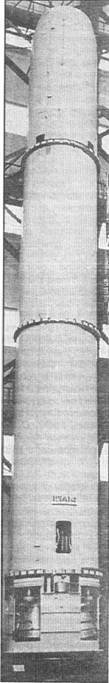 Р -36М. 15А14 (РС-20А) Постановление правительства о разработке ракетных комплексов Р-36М, МР-УР-100 и УР-100Н, оснащенных РГЧ ИН, вышло 2 сентября 1969 года. Разработка Р-36М и МР-УР-100 начата в КБ "Южное" под руководством Михаила Янгеля. "Преимущества РГЧ с прицельным разведением неуправляемых ББ объясняются, главным образом, тем, что: прицельное разведение ББ позволяет наилучшим образом распределить имеющиеся Б Б по объектам поражения (между отдельными целями, по площадям крупных целей и т. д.), повышая возможности и обеспечивая гибкость планирования ракетно-ядерных ударов; РГЧ позволяют формировать эффективную пространственно-временную структуру ракетно-ядерных ударов, имея более широкие возможности по построению рациональных боевых порядков из ББ и элементов комплекса средств преодоления ПРО и др.; с использованием РГЧ достаточно просто решается проблема модернизации и универсализации стратегического ракетного вооружения по отношению к различным вариантам и условиям боевого применения МБР и др.". (Межконтинентальные баллистические ракеты СССР (РФ) и США. История создания, развития и сокращения/Под. ред. Е.Б.Волкова. – М.: РВСН, 1996. С. 199). В отличие от Владимира Челомея, решившего использовать отработанный газодинамический способ старта ракеты, Янгель предложил минометный старт, "апробированный" на ракете РТ-20П Однако РТ-20П была "легкой" ракетой. Концепция тяжелой ракеты холодного (минометного) старта была разработана Михаилом Янгелем в 1969 году. Минометный старт позволял улучшить энергетические возможности ракет без увеличения стартовой массы. Главный конструктор ЦКБ-34 Евгений Рудяк не согласился с этой концепцией, считая невозможной разработку системы минометного запуска для ракеты весом более двухсот тонн. После перехода Рудяка на преподавательскую деятельность в декабре 1970 года Конструкторское бюро специального машиностроения (бывшее КБ-1 Ленинградского ЦКБ- 34) возглавил Владимир Степанов, который положительно отнесся к идее "холодного" запуска тяжелых ракет с помощью порохового аккумулятора давления. Главной проблемой, с которой столкнулся Степанов, была проблема амортизации ракеты в шахте. Раньше амортизаторами служили огромные металлические пружины. Вес Р-36М не позволял их применить. Степанов предложил использовать в качестве амортизаторов сжатый газ. Газ мог удержать и больший вес, но встала проблема: как удержать сам газ высокого давления на протяжении всего срока службы ракеты – десять – пятнадцать и более лет? Коллективу КБ Спецмаш под руководством Владимира Степанова удалось решить эту проблему и доработать шахты Р-36 под новые более тяжелые ракеты. К выпуску уникальных амортизаторов приступил Волгоградский завод "Баррикады". Параллельно с КБСМ Степанова доработкой ШПУ для ракеты занималось Московское КБТМ под руководством Всеволода Соловьева. Для амортизации ракеты, находящейся в транспорт- но-пусковом контейнере, КБТМ была предложена принципиально новая компактная маятниковая система подвески ракеты в шахте. Эскизный проект был разработан в 1970 году, в мае этого же года прошла успешная защита проекта в Минобщемаше. "Дальнейшие работы по реализации проекта потребовали проведения большого объема специальных расчетов, наличия серьезной экспериментальной базы, опытных специалистов соответствующего проф