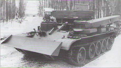Танковые тягачи, БРЭМ и машины технической помощи, созданные на базе Т-54 Создание танкового тягача на базе Т-54 было поручено КБ завода №183 еще в июле 1947 г. Но завод из-за доработки конструкции базовой машины и организации ее серийного производства приступил к этой работе только в ноябре 1957 г. Технический проект тягача был закончен в декабре того же года, после чего его направили на рассмотрение в Министерство транспортного машиностроения. До июля 1948 г. велась доработка проекта. Опытный танковый тягач «Объект 9» с развернутой кран-стрелой грузоподъемностью 3 тс. Установка 7,62-мм автомата Калашникова с кривым стволом в шаровой опоре в крыше корпуса «Объекта 9». Однако в связи с изменением Научно- техническим комитетом БТ и MB ВС величины тягового усилия лебедки проект машины пришлось вновь перерабатывать. В октябре 1948 г. представленный на повторное рассмотрение в НТК БТ и MB проект тягача, получивший заводское обозначение «Объект 9», был одобрен для изготовления опытного образца. Изготовленный в конце сентября 1950 г. опытный образец успешно прошел в полном обьеме заводские испытания, которые завершились 6 декабря. Танковый тягач «Объект 9» являлся быстроходной бронированной гусеничной машиной, предназначенной для эвакуации аварийных боевых машин массой до 40 т из зоны огневого воздействия противника, вытаскивания застрявших машин, погру- зочно-разгрузочных работ и транспортировки грузов. «Объект 9» был вооружен 12,7-мм пулеметом ДШК, который находился на наружной турельной установке, закрепленной на основании люка стрелка-радиста, а также 7,62-мм автоматом Калашникова с кривым стволом, смонтированным в шаровой опоре в крыше корпуса. Установка зенитного пулемета ДШК испытаний не выдержала из-за плохой кучности боя и ограниченных углов вертикального обстрела. Боекомплект к пулемету ДШК составялял 400 патронов, к автомату Калашникова – 1350. Тягач боевой массой 31,6 т мог выполнять следующие операции: – буксировать средние танки и самоходные установки в различных дорожных условиях, а также тяжелые танки и самоходные в зависимости от условий одним или двумя тягачами в сцепе; – вытаскиватъ средние и тяжелые танки при различных видах застревания, требовавших для вытаскивания усилия до 75 т; – снятие и установку с помощью крана- стрелы танковых агрегатов массой до 3 т. К концу 1951 г. три доработанных опытных образца тягача «Объект 9» отправились на длительные полигонные испытания, которые продолжались до 30 мая 1952 г. До конца 1952 г. совершенствовалась конструкция тяговой лебедки и буксирного устройства. Танковый тягач БТС-2. Окончательные полигонные испытания, по результатам которых «Объект 9» был рекомендован к принятию на вооружение, прошли в 1954 г. В феврале 1955 г. под маркой БТС-2 его приняли на вооружение Советской Армии. В течение 1956 г. завод изготовил и сдал 10 машин. БТС-2 собирались с использованием корпусов танка Т-54 выпуска 1948 г. Кроме того, в КБ завода №183 выпустили чертежи для изготовления тягачей на базе серийного корпуса танка Т-54А выпуска 1956 г., а также провели работы по улучшению отдельных узлов и механизмов (установка новых средств связи Р-113 и ТПУ-120, доработка буксирного устройства). Ведущим инженером по тягачу БТС- 2 («Объект 9») был Н.А. Шомин. Танковый тягач БТС-2 отличался от опытного образца тягача «Объект 9» отсутствием установки 12,7-м