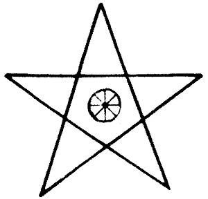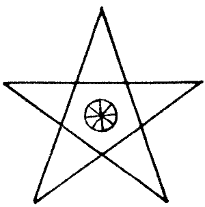 РИТУАЛ ПЕНТАГРАММЫ ЗАКЛИНАТЕЛЬНЫЙ СТУПЕНЬ I. Выполните Ритуал Релаксации, РП и РГ. Они хорошо подготовят вас к дальнейшей работе. СТУПЕНЬ 2. Повернитесь лицом из-за алтаря (если он имеется) на восток и сделайте Каббалистический Крест из РП. СТУПЕНЬ 3(а). Пойдите на восток. Сделайте активную уравновешивающую пентаграмму Духа. Вибрируйте: Экз-ар-пи. При последнем звуке пентаграмма должна быть закончена. Как и в РП, вдохните, чувствуя, как в вас входит энергия — и выдохните по окончании пентаграммы. Выбросьте руки вперед в центр пентаграммы при звуке «пи». СТУПЕНЬ 3(6). При изображении знака Духа, колеса, в центре уже имеющейся пентаграммы вибрируйте Э-хе-йе. При последнем звуке выбросьте руки вперед в центр колеса. Этот символ следует изображать по часовой стрелке, начиная и кончая в вершине. Затем рисуйте вертикальные и горизонтальные линии. Затем 2 диагонали. (Перечитайте указания к РП, чтобы вспомнить, как посылать энергию через выброшенные вперед руки. В этом же ритуале энергию надо посылать в конце слова). СТУПЕНЬ 4(а). Продолжая смотреть на восток, сделайте заклинатсльную пентанрамму элемента Воздух над изображенными фигурами. Так же вибрируйте: 0-ро И-ба-ха А-о-цод-пи при изображении пентаграммы. На последнем звуке выбросьте руки и пошлите заряд. СТУПЕНЬ 4(6). Вибрируйте: Йуд-Хе-Вав-Хе при изображении знака Водолея в центре пентаграммы. СТУПЕНЬ 5. Пойдите на юг, проводя белую линию, как в РП. СТУПЕНЬ 6(а). Сделайте активную уравновешивающую пентаграмму Духа, вибрируя: Би-то-эм. СТУПЕНЬ 6(6). Рисуя колесо, вибрируйте: Э-хе-ие. СТУПЕНЬ 7(а). Продолжая смотреть на юг, над изображенными фигурами нарисуйте заклинательную пентаграмму Огня. Вибрируйте: 0-и-пе Те-а-а Пе-до-ке. СТУПЕНЬ 7(6). Вибрируйте: Эл-о-хим при изображении знака Льва в центре пентаграммы. СТУПЕНЬ 8. Пойдите на запад, проводя белую линию, как в РП. СТУПЕНЬ 9(а). Сделайте пассивную уравновешивающую пентаграмму Духа, вибрируя: Хе-ко-ма. СТУПЕНЬ 9(6). Вибрируйте: АГЛА при изображении Колеса Духа. СТУПЕНЬ 10(а). Продолжая смотреть на запад, над уже изображенными фигурами сделайте заклинательную пентанрамму Воды, вибрируя: Эм-пе-хе Ар-зел Га-и-ол СТУПЕНЬ 10(6). Нарисуйте Голову Орла в центре пентаграммы при вибрации «Эль». СТУПЕНЬ 11. Проведите белую линию на север. СТУПЕНЬ 12(а). Сделайте пассивную уравновешивающую пентаграмму Духа, вибрируйте: Эн-а-эн-та. СТУПЕНЬ 12(6). Вибрируйте АГЛА при изображении Колеса Духа. СТУПЕНЬ 13 (а). Продолжая смотреть на север, над уже изображенными фигурами нарисуйте заклинательную пентаграмму Земли при вибрации: И-мор Ди-ал Хек-те-га. СТУПЕНЬ 13(б). Вибрируйте: А-до-наи при изображении знака Тельца. СТУПЕНЬ 14. Проведите линию на восток, завершая цикл. Вернитесь в исходное положение за алтарем, смотреть на восток. СТУПЕНЬ 15. Вызовите Архангелов и Каббалистический Крест, как в РП. Завершите выполнением РП. Будет хорошо, если вы также выполните и РГ. Примечание: Как и в РП, пентаграммы голубые, а соединяющие их линии — белые. Колесо Духа — яркого, чистого, белого цвета, как и соединительные линии. Знак Водолея — желтый, Знак Льва — красный. Символ Орла — синий. Знак Тельца — черный. Вы заметили, что не указывается определенного инструмента. На первое время можно взять кинжал. Далее вы увидите, что для этого ритуала нет определенного орудия. Ниже вы найдете описание ритуала. Его следует выуч