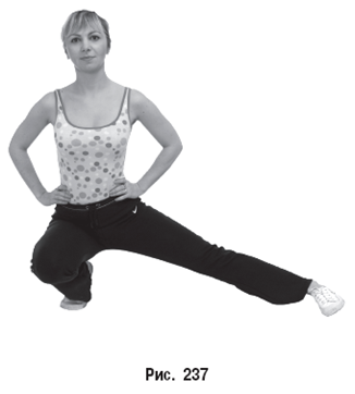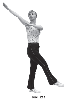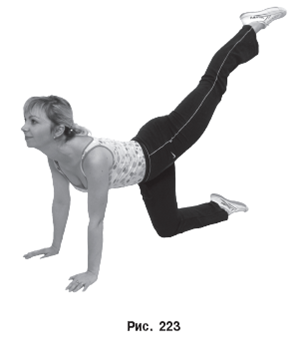 Лечебные движения при заболеваниях желудочно-кишечного трактаВ комплексном лечении заболеваний желудочно-кишечного тракта гимнастике отводится важная роль. В процессе тренировки улучшаются сердечно-сосудистая деятельность и кровообращение, в том числе и в брюшной полости. Усиливается дыхание, организм обогащается ферментными соединениями и витаминами, ионами калия и кальция, происходит активизация окислительно-восстановительных процессов, укрепляются мышцы брюшного пресса, что непременно сказывается на повышении общего тонуса и улучшении внешнего вида. Кроме упражнений с вовлечением мышц брюшного пресса при заболеваниях желудочно-кишечного тракта большое значение имеют упражнения для верхних конечностей с участием крупных и средних мышечных групп, а также для нижних конечностей, нагрузка на которые благотворно сказывается и на работе органов, расположенных в брюшной полости. Полезны и дыхательные упражнения, так как движения диафрагмы при вдохе и выдохе вызывают изменение внутри-брюшного давления. В результате улучшается кровообращение и увеличивается перистальтика кишечника. Лечебные движения при язвенной болезни желудка и двенадцатиперстной кишкиЯзвенная болезнь желудка и двенадцатиперстной кишки – это хроническое заболевание, которое характеризуется образованием язв в слизистой оболочке и более глубоких слоях стенок желудка и двенадцатиперстной кишки. Чаще всего причинами этого заболевания называют неправильное питание и психоэмоциональные нагрузки. Специально разработанные упражнения повышают устойчивость кислотно-щелочного равновесия, что, в свою очередь, благоприятно отражается на рубцевании язвы. Кроме того, занятия физическими упражнениями регулируют процессы возбуждения и торможения в коре головного мозга и, что особенно важно для страдающих язвой желудка, положительно влияют на их нервно-психическое состояние. Приведенные ниже комплексы лечебных упражнений назначаются при язвенной болезни желудка и двенадцатиперстной кишки в период обострения при отсутствии болевого синдрома. Комплекс 1Вводная частьУПРАЖНЕНИЕ 1Исходное положение – лежа на спине. Положите левую руку на грудь, правую – на живот (рис. 200) и произведите медленный (примерно 4 секунды) вдох, поглощая воздух прерывистыми порциями. При вдохе выпятите переднюю брюшную стенку вперед и сократите диафрагму, затем переведите грудную клетку в положение верхнего вдоха, сократив брюшную стенку и расслабив диафрагму, потом выдохните воздух маленькими порциями через нос (выдох – примерно 6 секунд). Повторите упражнение 5–6 раз, затем спокойно подышите. УПРАЖНЕНИЕ 2Исходное положение – то же. Сделайте свободный вдох и выдох. Повторите в среднем темпе 1–3 раза. УПРАЖНЕНИЕ 3Исходное положение – лежа на спине. Положите руки вдоль туловища. Отведите правую (левую) ногу в сторону (рис. 201) – сделайте вдох, вернитесь в исходное положение – выдох. Выполните в среднем темпе 2–3 раза. УПРАЖНЕНИЕ 4Исходное положение – лежа на левом боку. Поднимите левую ногу вверх (рис. 202) – сделайте вдох, вернитесь в исходное положение – выдох. Повторите упражнение на другом боку. Выполняйте в среднем темпе 4–5 раз. УПРАЖНЕНИЕ 5Исходное положение – сидя. Поднимите руки через стороны вверх, сделайте медленный (4 секунды) вдох через нос, медленно опустите рук